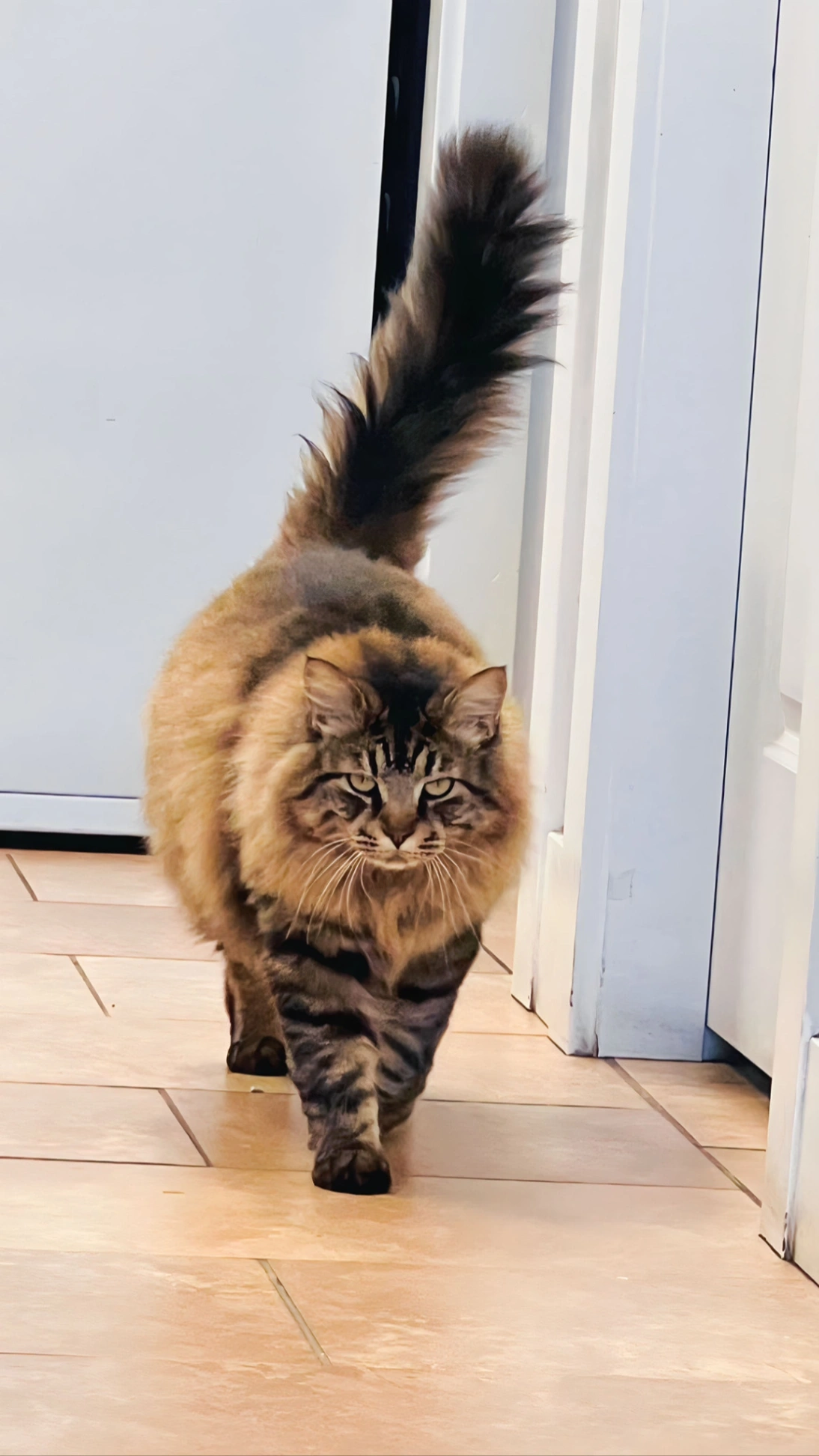 He’s little big and little healthy cat. He’s a maine coon. He’s older 8 years old male cat