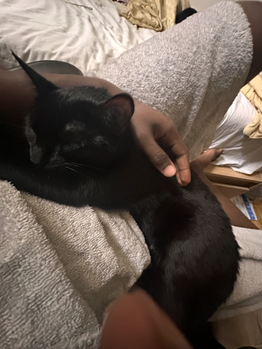 He has dark ears, tail and a very big knot on his lower back. He’s a very skittish and scared kitten but he’s very sweet and nice