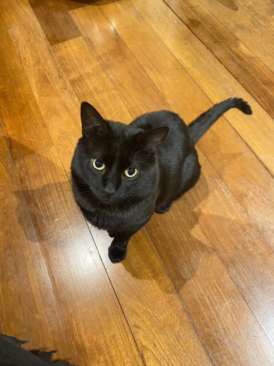 Es un gato negro tímido, de dos años de edad no está castrado