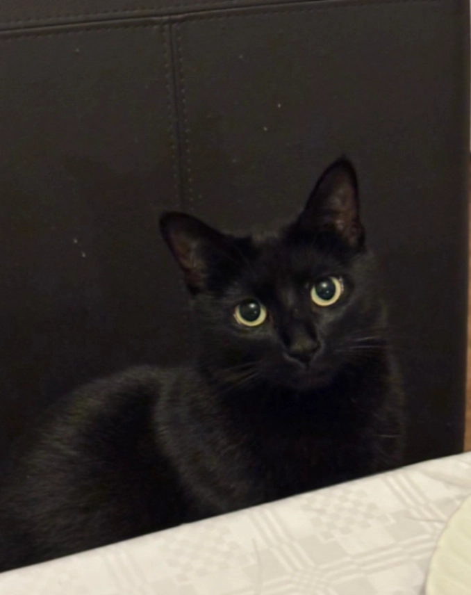 Schwarze, weibliche Katze (kastriert), Freigängerin, sehr ängstlich und scheu.