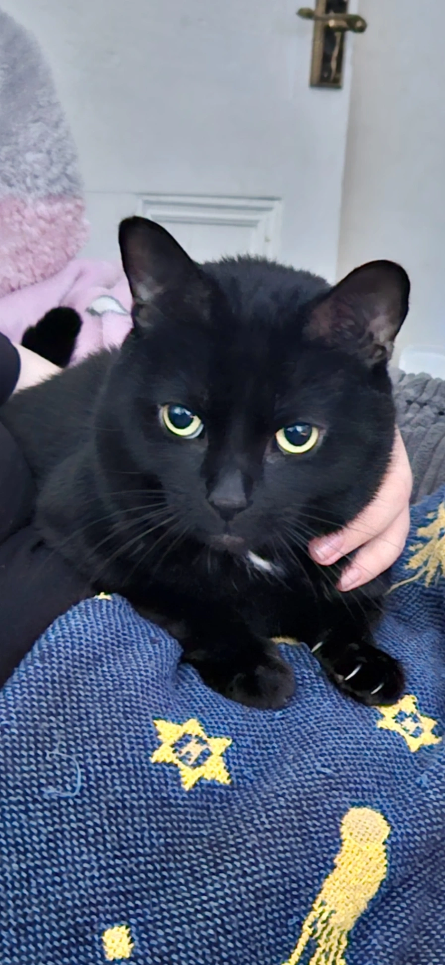If seen or captured please call me or my partner. My baby is a loving, vocal boy who is timid but affectionate, he is an indoor cat with no collar, loves strokes and treats. Hes not been seen since last night and we think escaped this morning. He is all black except a little white blob on his chest. We live close to wombwell funeral services. Please any information let us know. We just want to get him safe and back home 😭