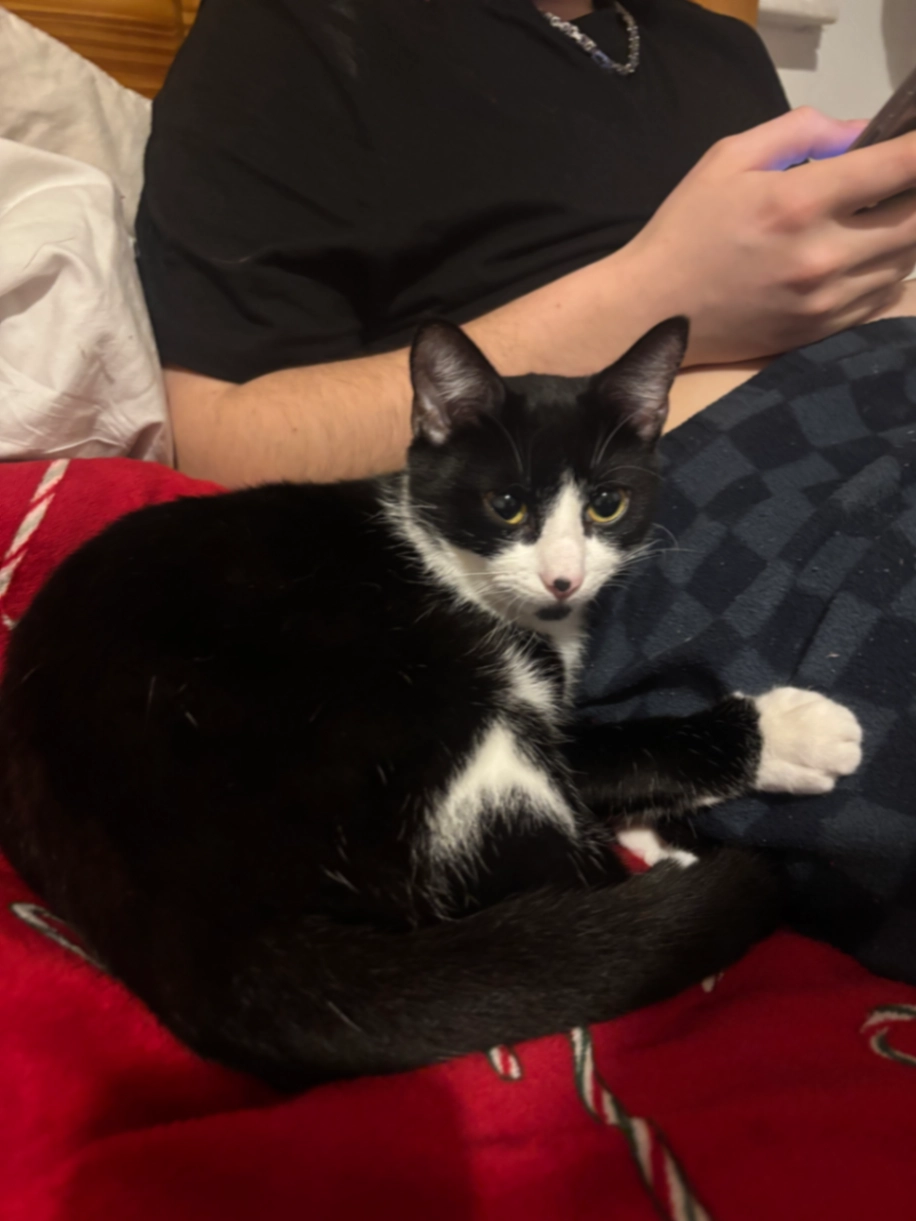 Black and white got a white belly with black dots she’s the most loving kindest cat this is very unusual she’s been gone over a week