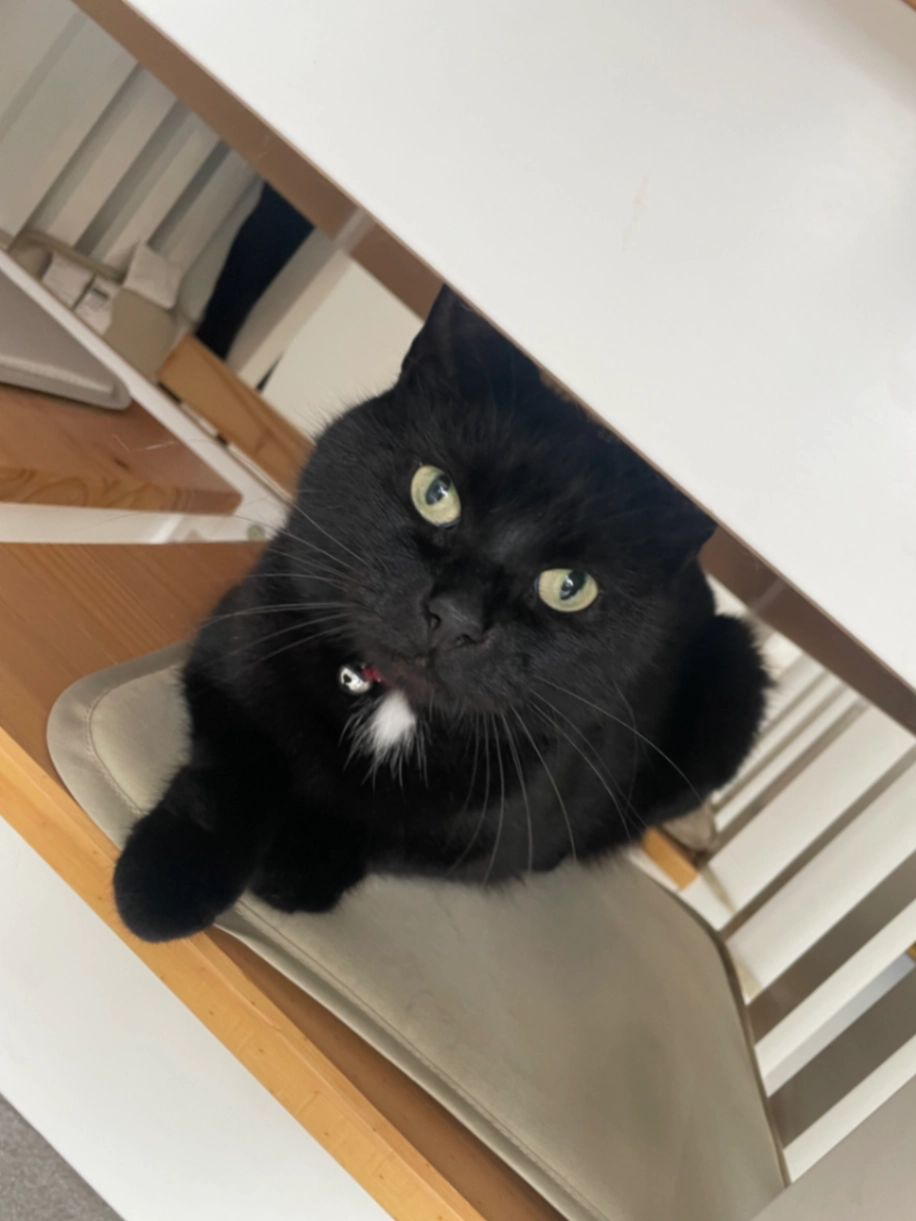 She’s a small black cat with a little patch of white on her chest. She was last seen with a glittery collar.