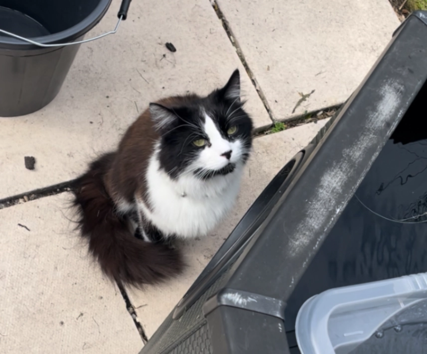 We last saw Ted going into neighbours garden. 30.10. 2025 around 10.30 am. He's very timid and shy but not aggressive if approached.