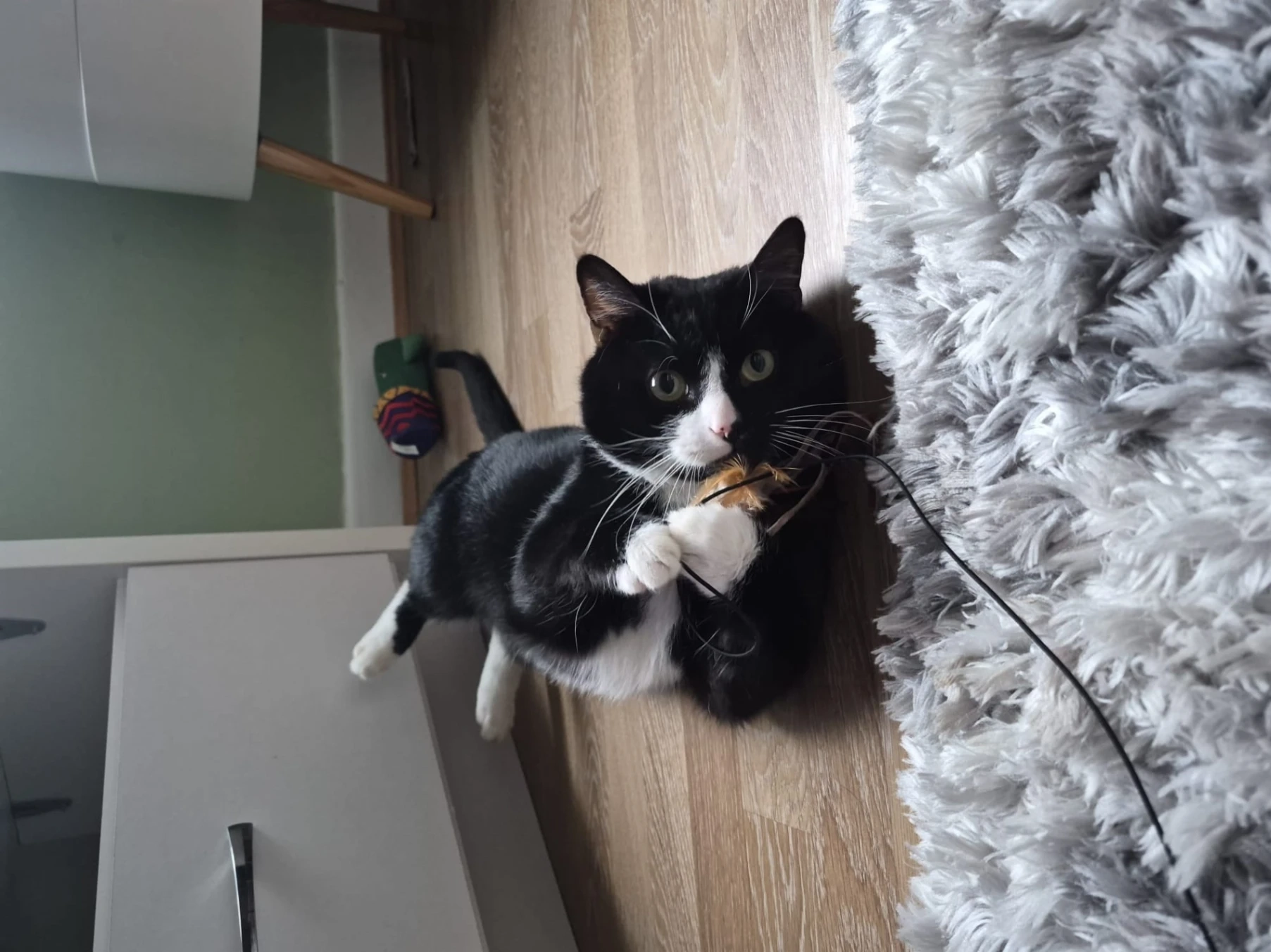 Small cat. White tip on end of tail. Small, faint patch on side of mouth