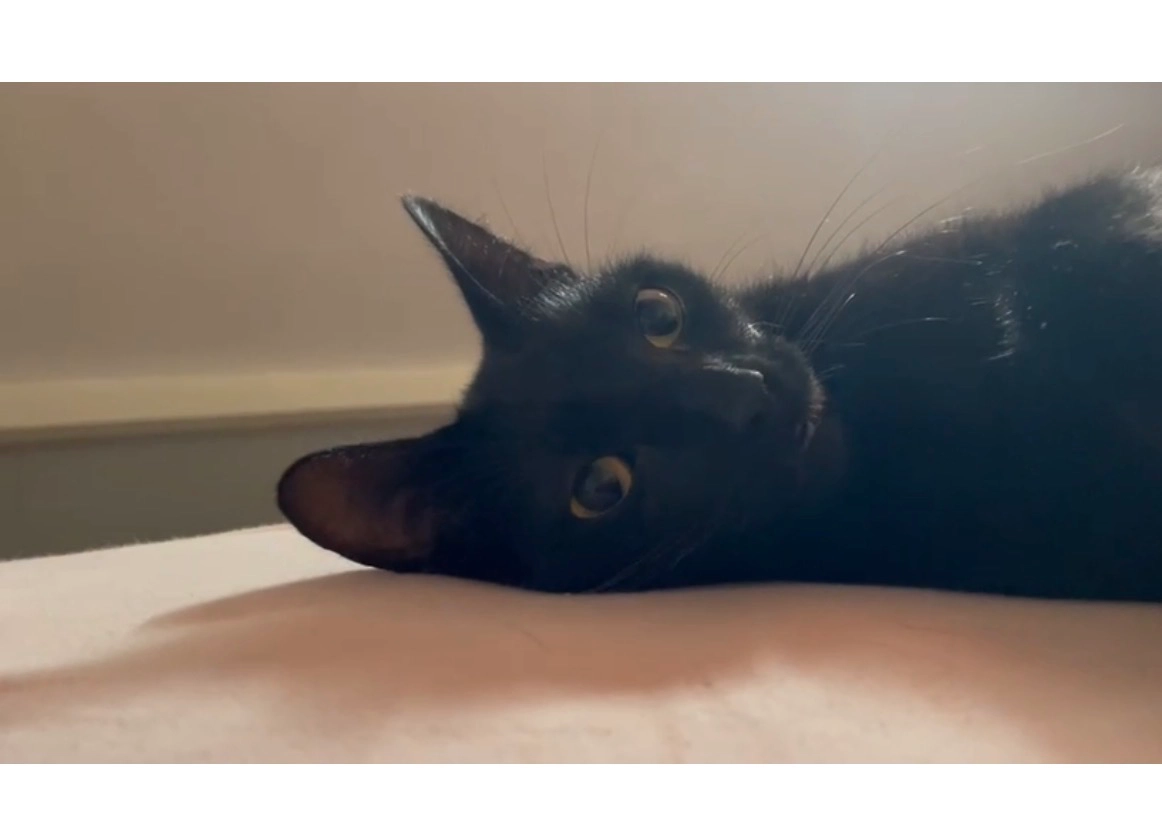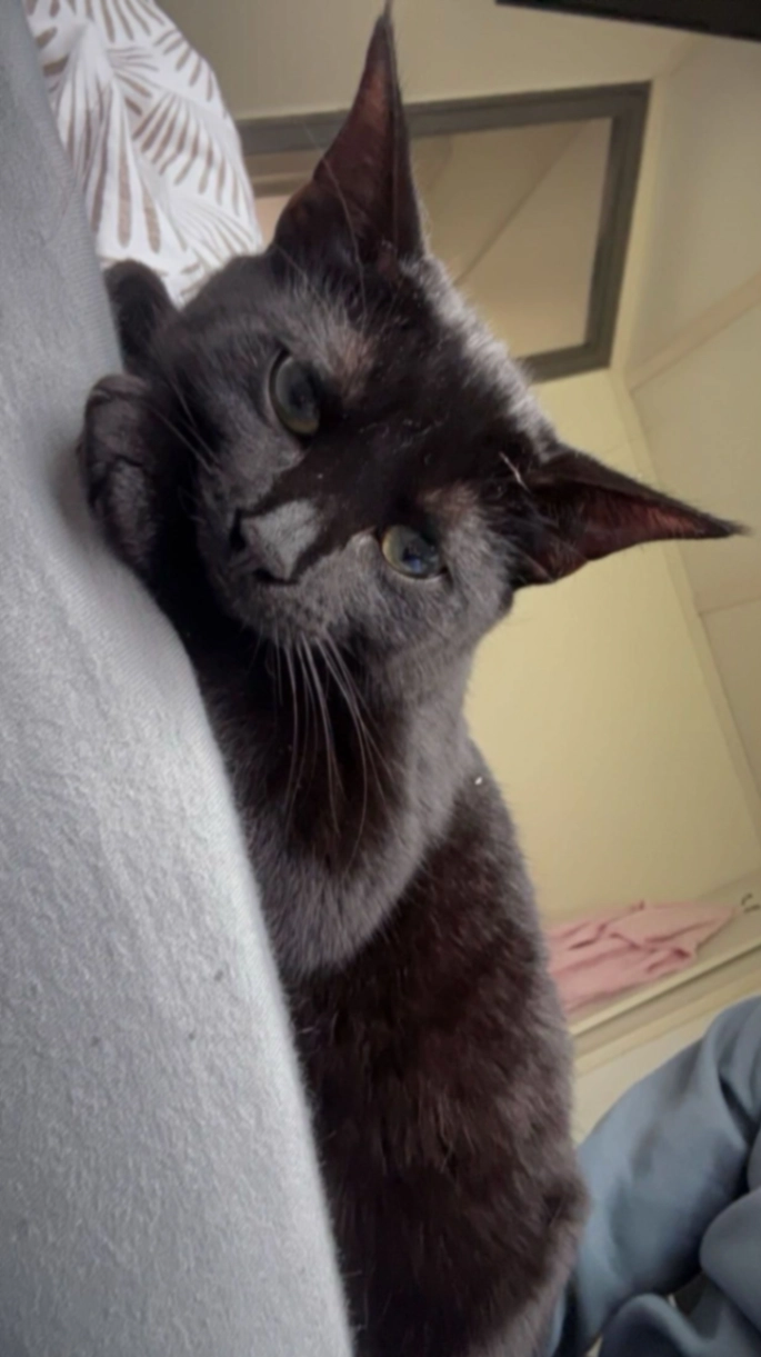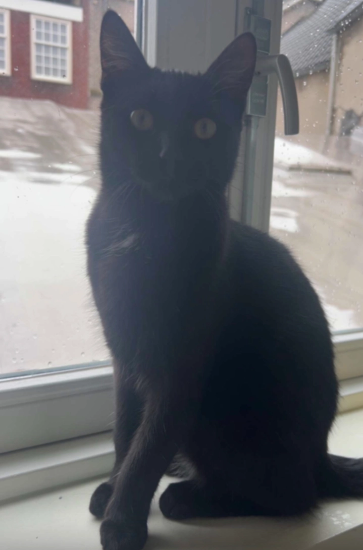 Noir is een zwarte kat, met een klein wit vlekje op z'n borst. Als hij brokjes hoort komt hij altijd aanlopen.
