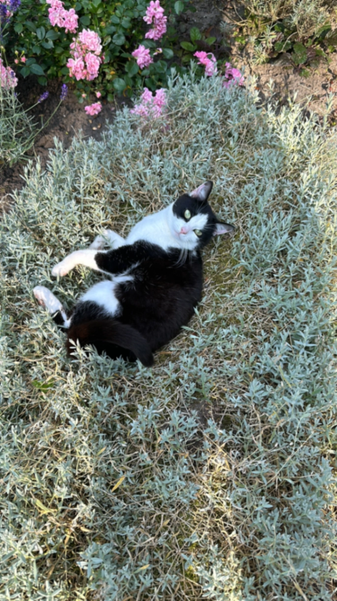 Geel/ groene ogen. Scheur in haar oor. Altijd een krul staart die ze afwisseld van kant. Naar vreemde mensen schuw. Houdt heel erg van eten dus kan je goed lokken met brokjes. Zwart wit, lange zwarte staart. Is 5 jaar oud. Is vermist sinds vanmiddag 6 uur