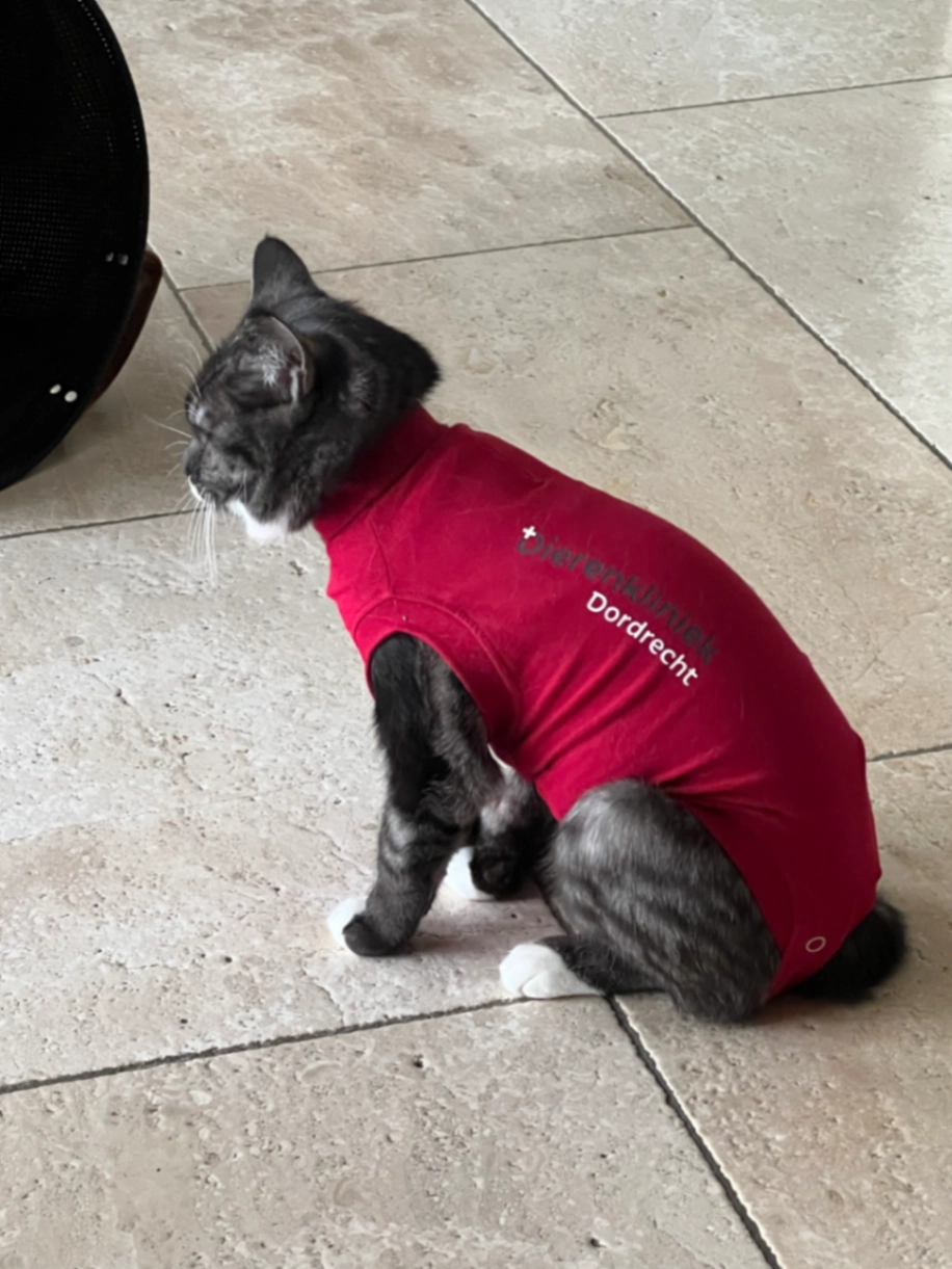 Ze heeft het pakje op de foto aan ivm recente sterilisatie ingreep.