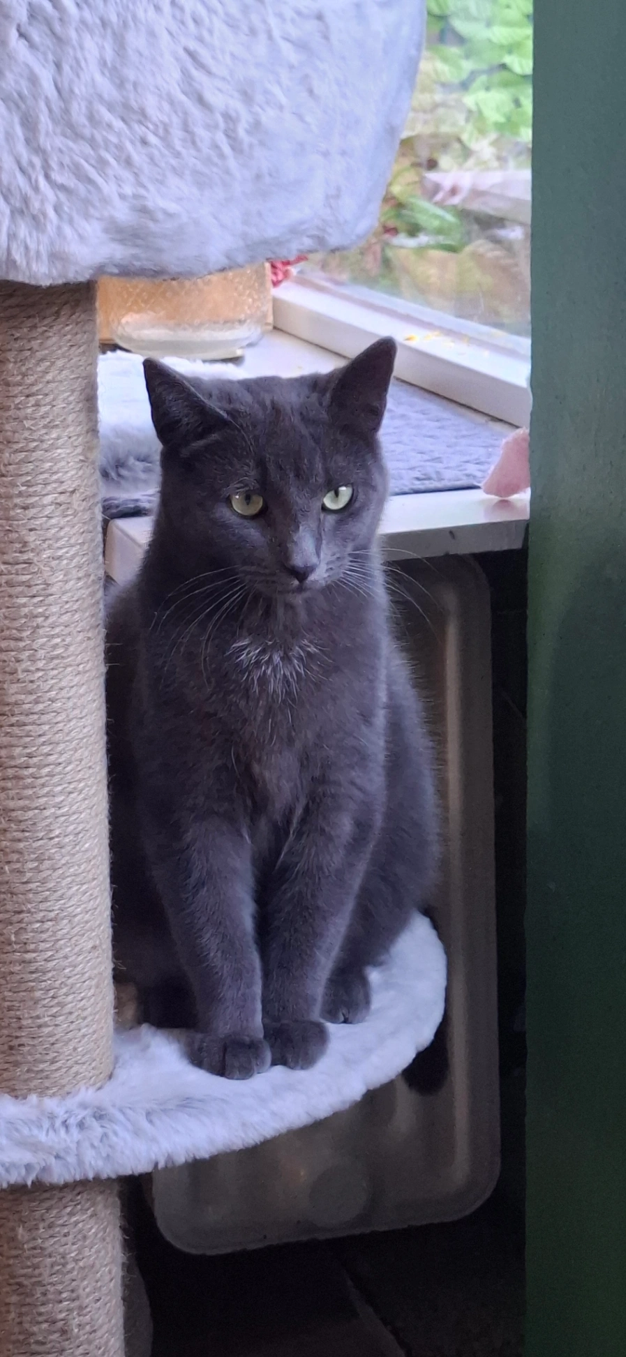 George is een kater van 8 maanden uit. Hij bleef tot nu toe altijd in onze tuin en schrikt van heel veel dingen. Hopelijk kunnen de bewoners in onze omgeving in hun schuur kijken of hij daar zit.