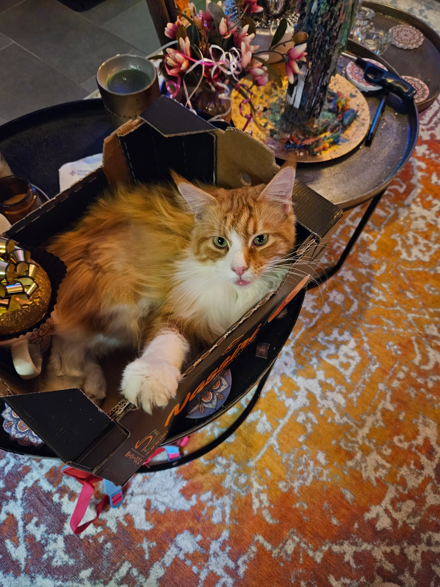 Thijs is een Maine coon van 5 jaar. Thijs woonde bij mijn moeder, maar door haar overlijden is hij bij ons gekomen. Wij wonen op zeer korte afstand van mijn moeder.