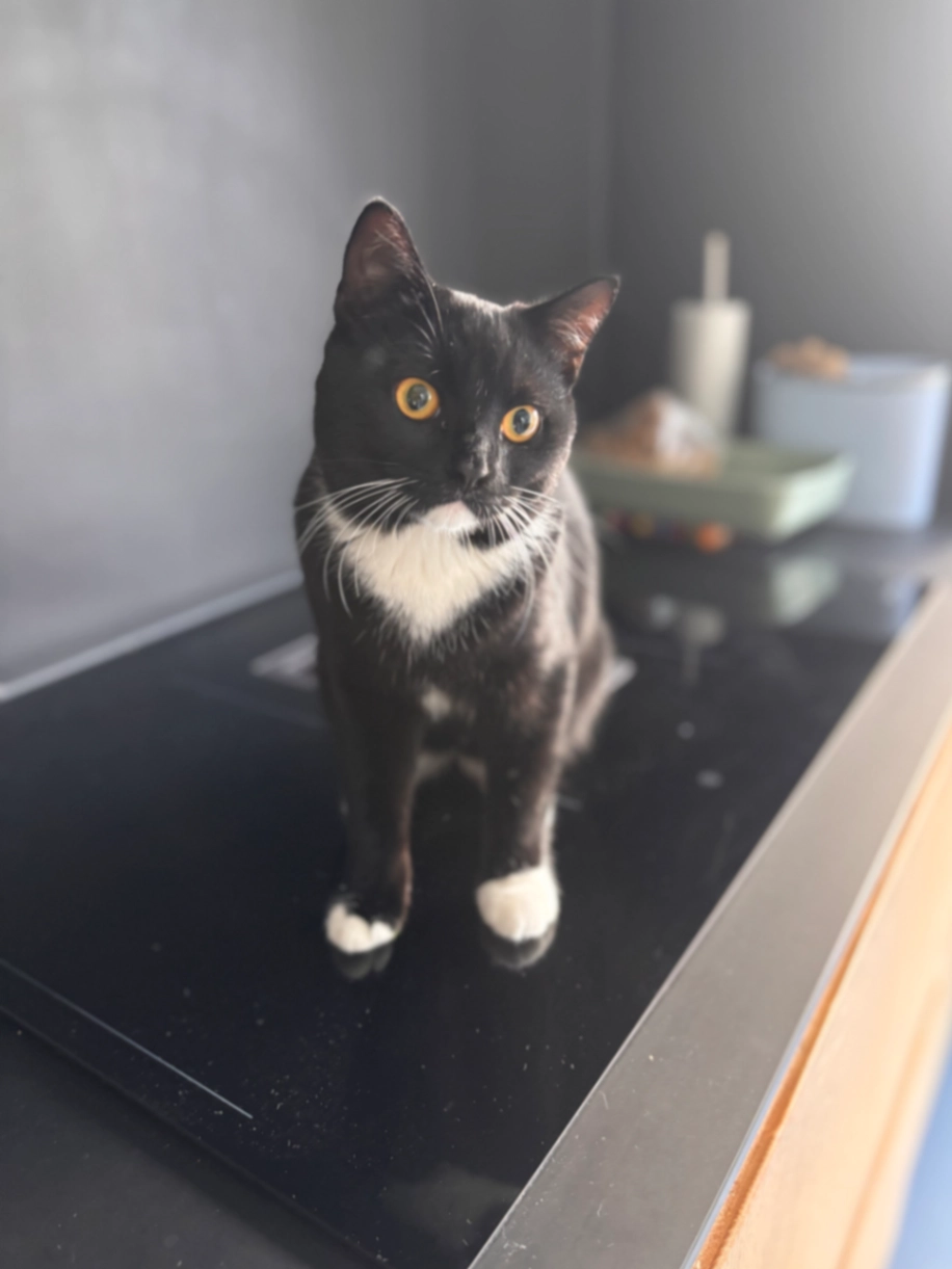 4 witte pootjes, 6 maanden oud, nog nooit buiten geweest