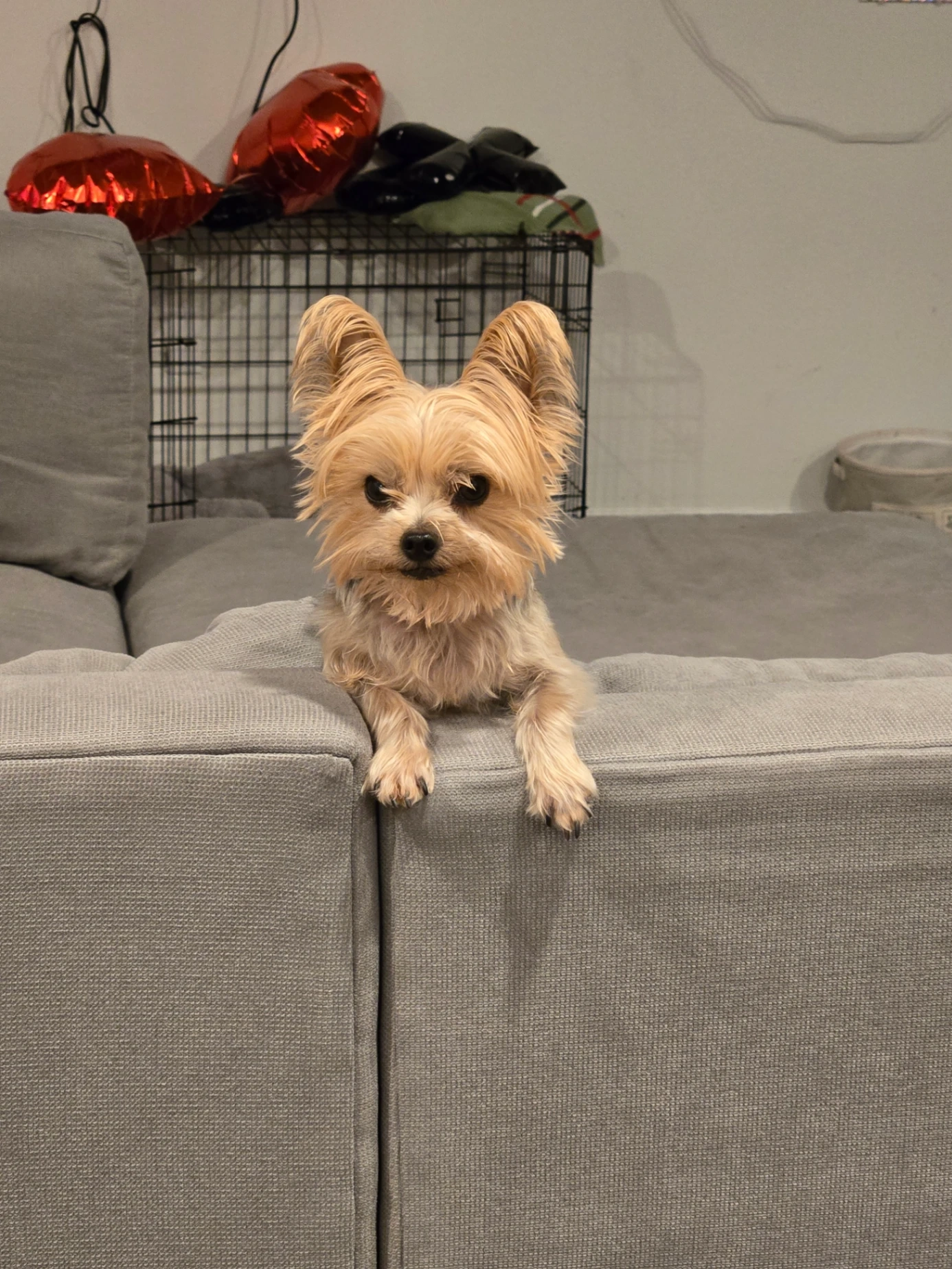 She is petite. Pazely is gray with tan extremities. She has long ears.