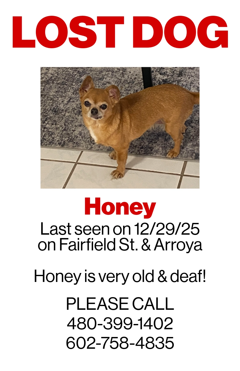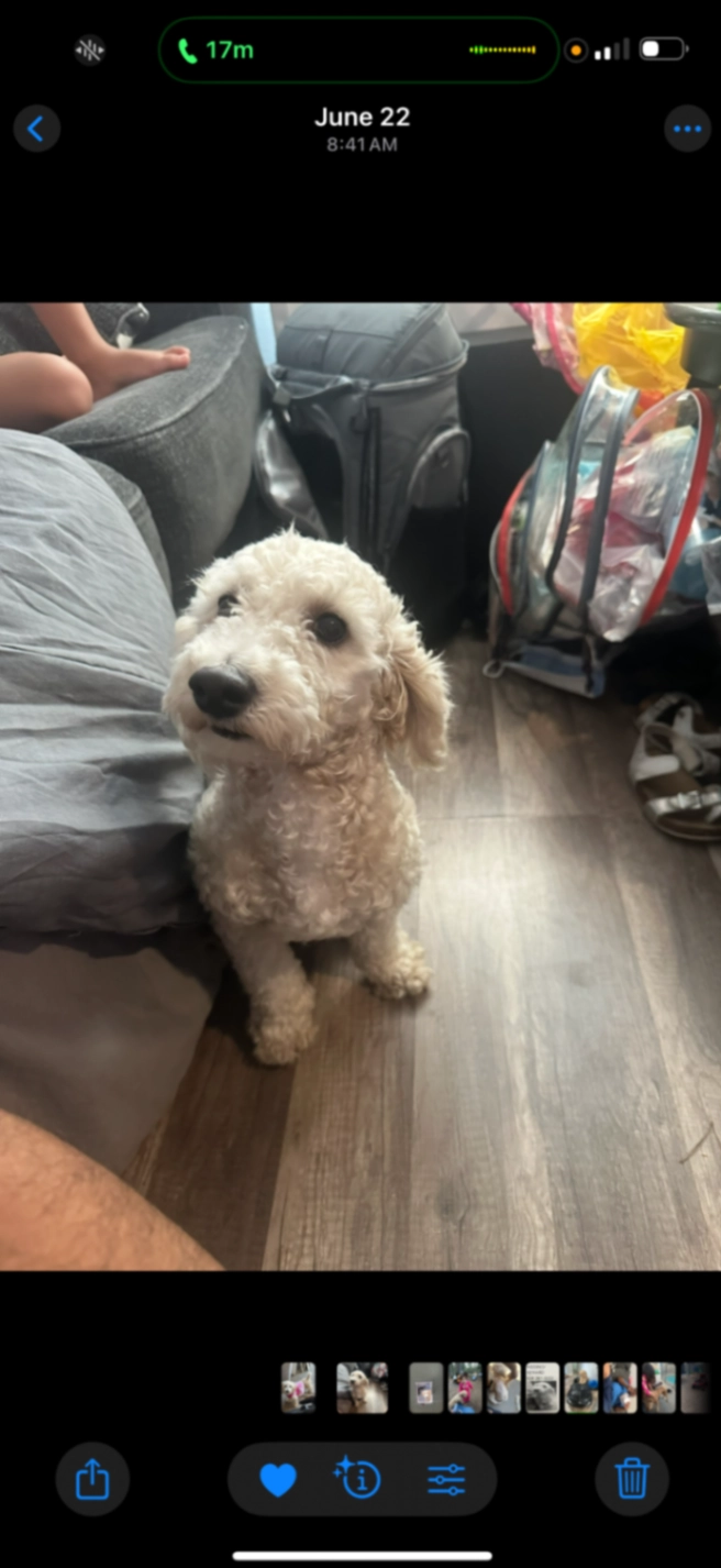 Toy poodle mix last seen on Macdonald and southern on 12/29/25. She is chipped and la wearing a green harness.