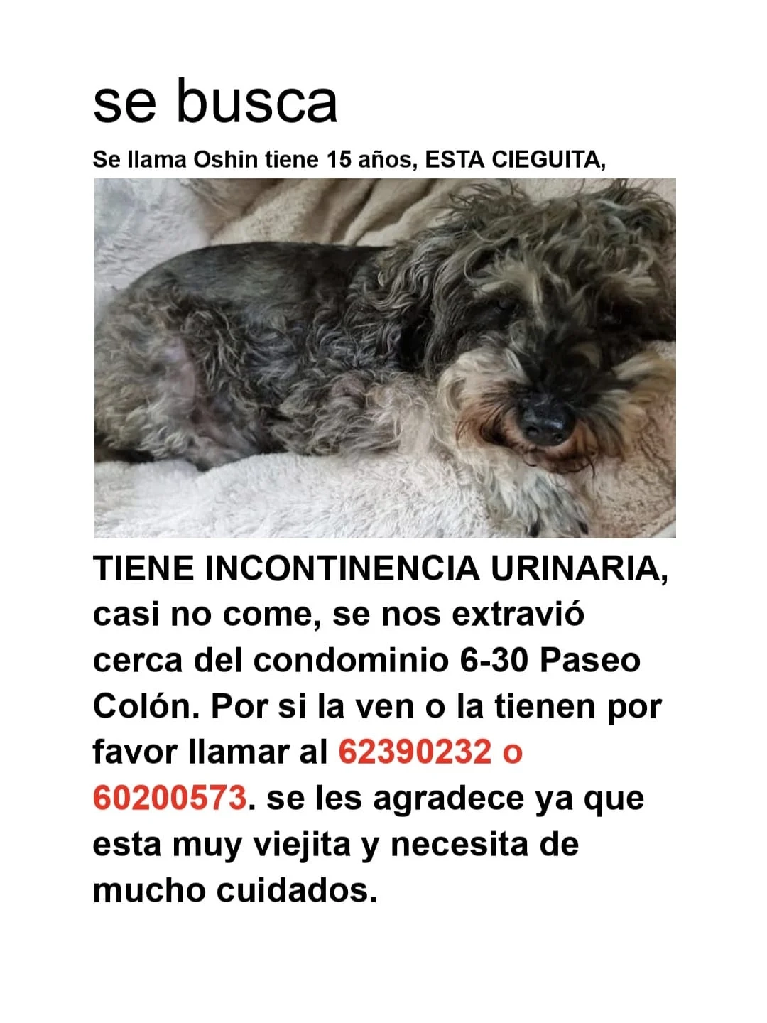 Si alguien la vio, la tiene o sabe algo.