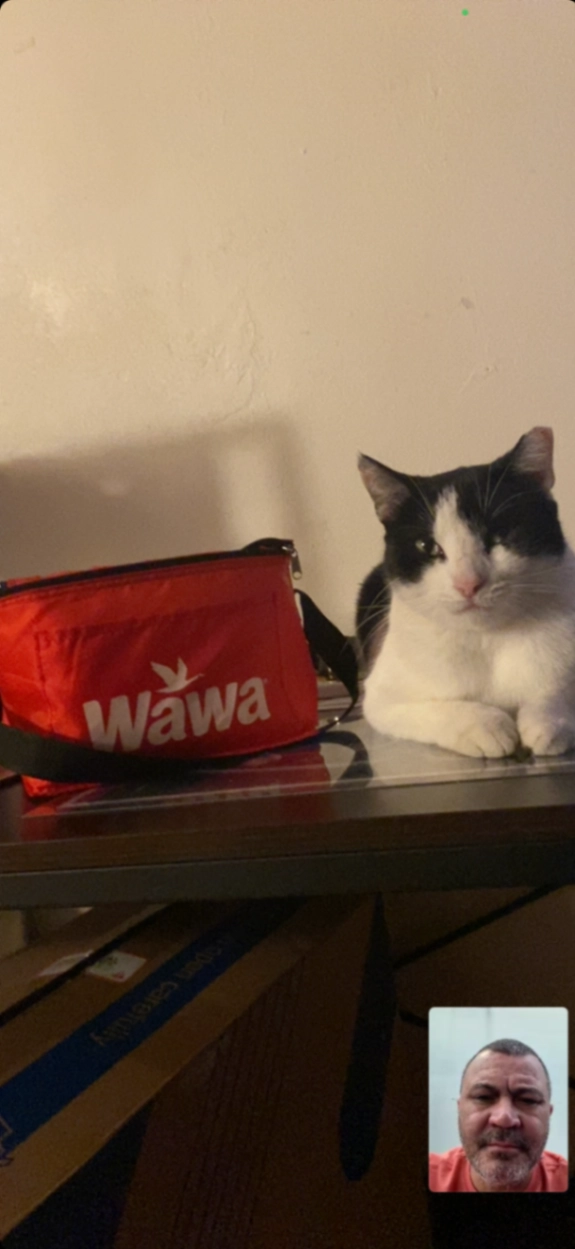 Shes multiple colors but mostly white and this grayish orange shes has a unique pattern starting from her head all throughout her body, she is very small for a cat and is very friendly she loves love. shes never been outside before.