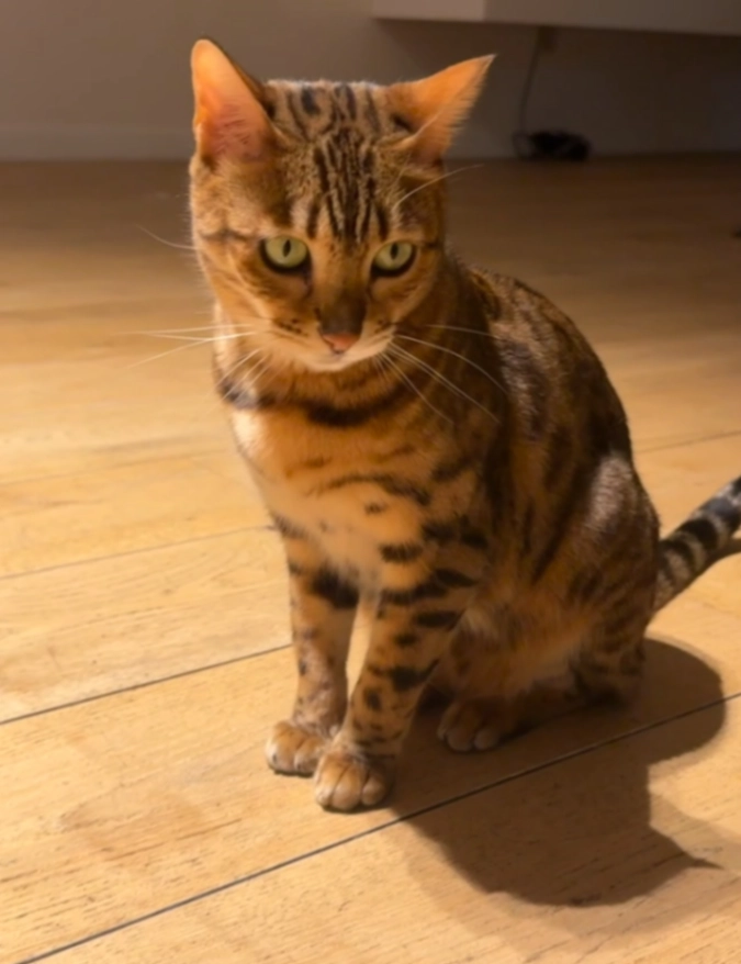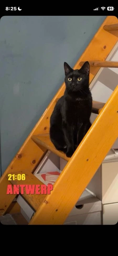 Onze zwarte kater is vermist. Hij heeft een volledig zwarte, korte vacht met felgele/goudkleurige ogen. Hij is slank gebouwd en heeft grote, rechtopstaande oren. Op zijn keel heeft hij een klein wit vlekje. Hij is gechipt.