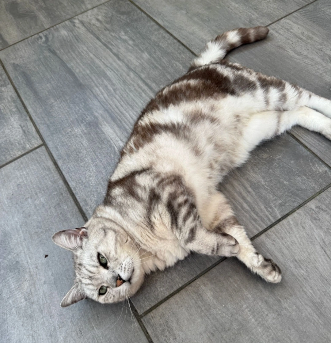 Birtisch Kurzhaar, 13 Jahre alt, männlich katriert, grüne Augen, schwarz-silber gestromt, sehr zutraulich. Bitte melden bei Andrea Steinnagel-Salzburger, 0171 - 3484662