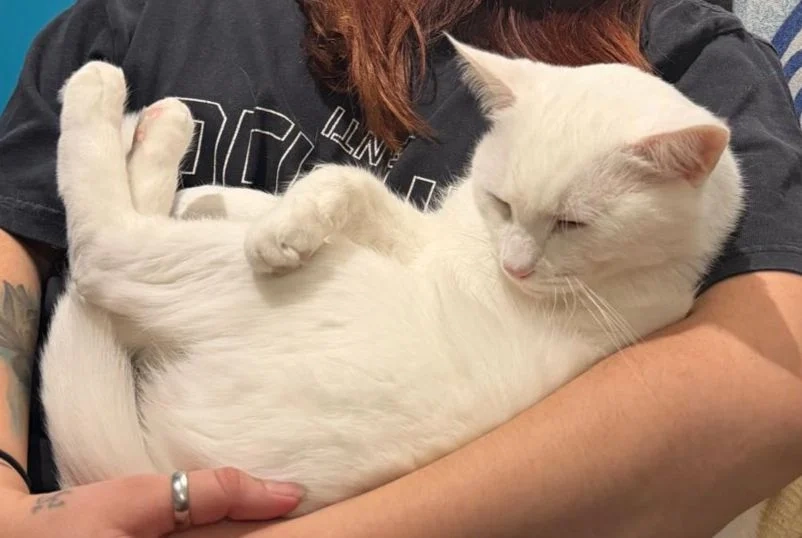 Européen poil blanc, yeux jaunes, il a 4 ans, très sociable et câlin