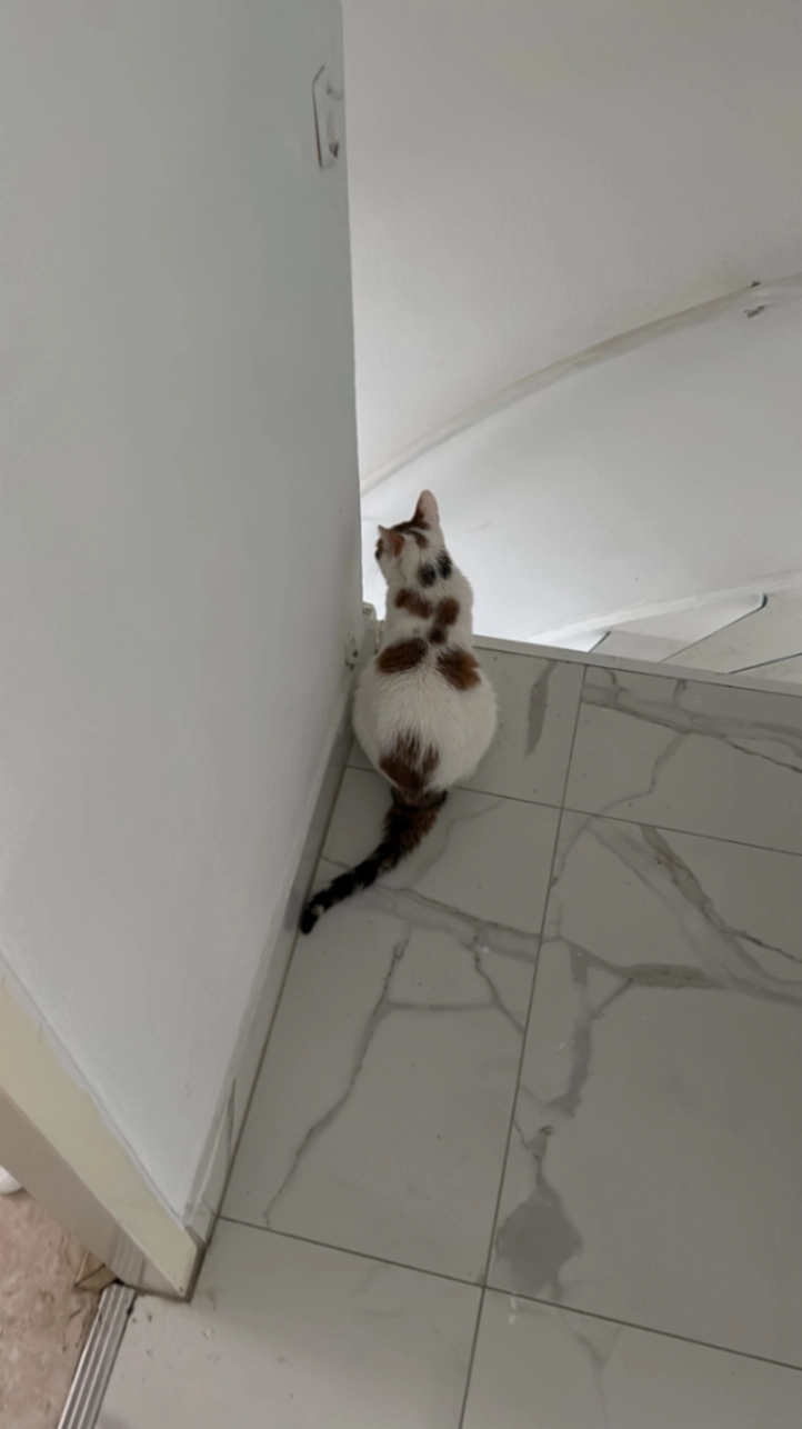 Een slimme dame met een dikke vacht. witte vlekken op de buik en borst en een wit stipje op het uit einde van de staart. droeg voor het laatst een rode halsband met een hangertje eraan met een telefoon nummer erop en haar naam. ook heeft ze een klein wit vlekje op haar voorhoofd