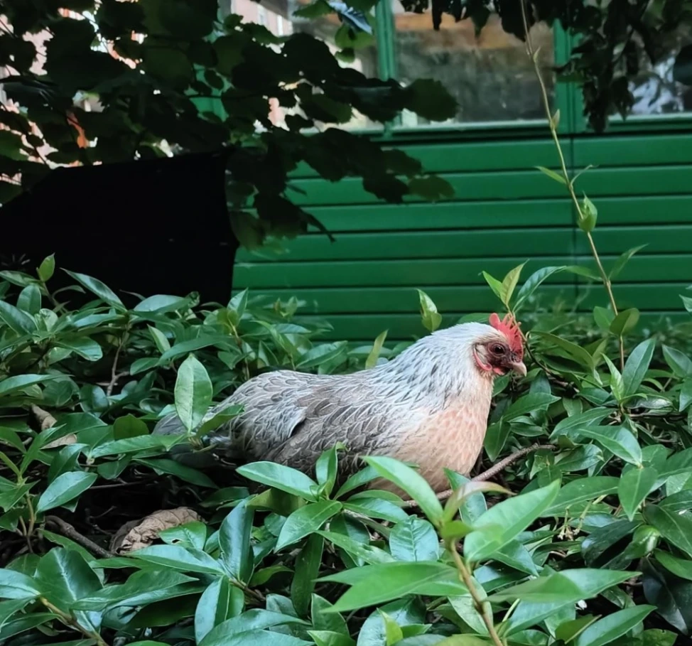 Japans krielkipje, beige-bruin. Foto is van de zomer, nu heeft ze wat kortere veren, net in de rui. kip is erg tam. Vermist sinds gisteravond 26-02