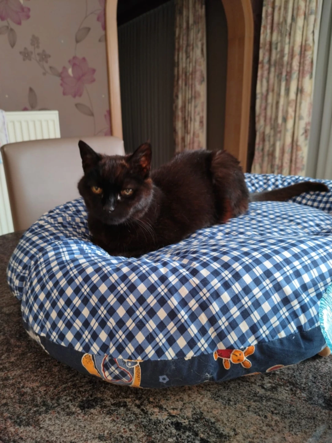 Kleine zwartbruine kattin, kan niet heel goed meer horen maar reageert wel op haar naam