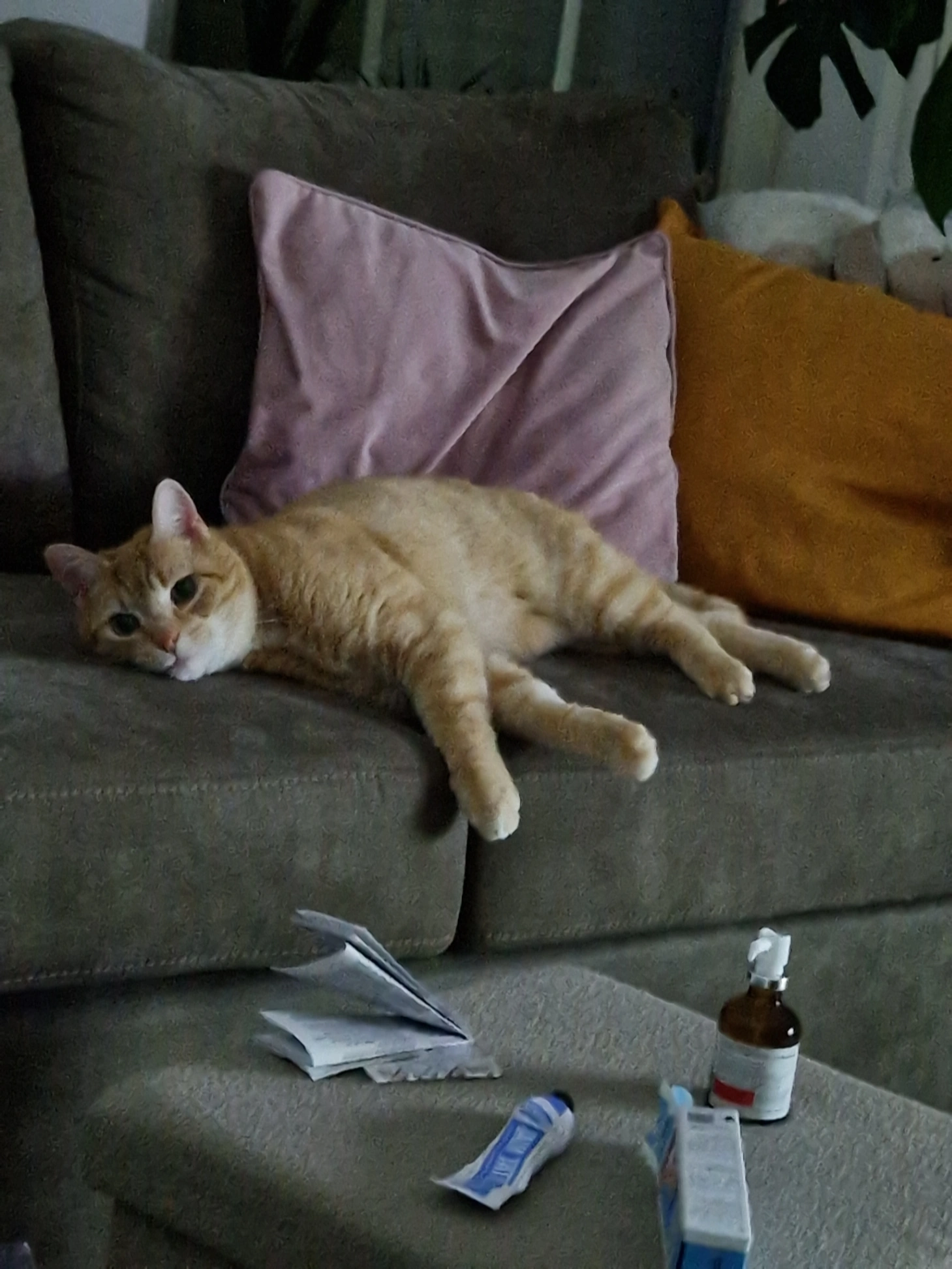 Rosse kater met witte plek onder zijn kin.