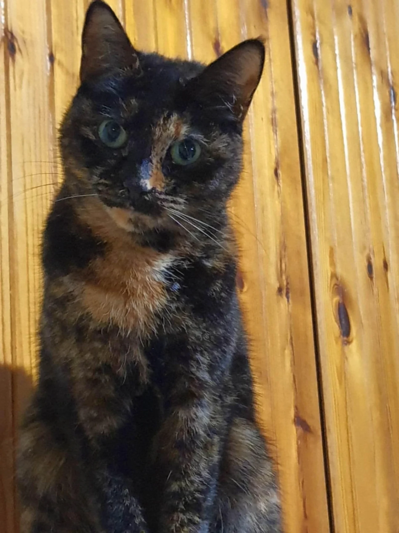Couleur chocolat elle. Fait 2 kg et a une cicatrice de césarienne sur le ventre. Pas de collier mais pucée
