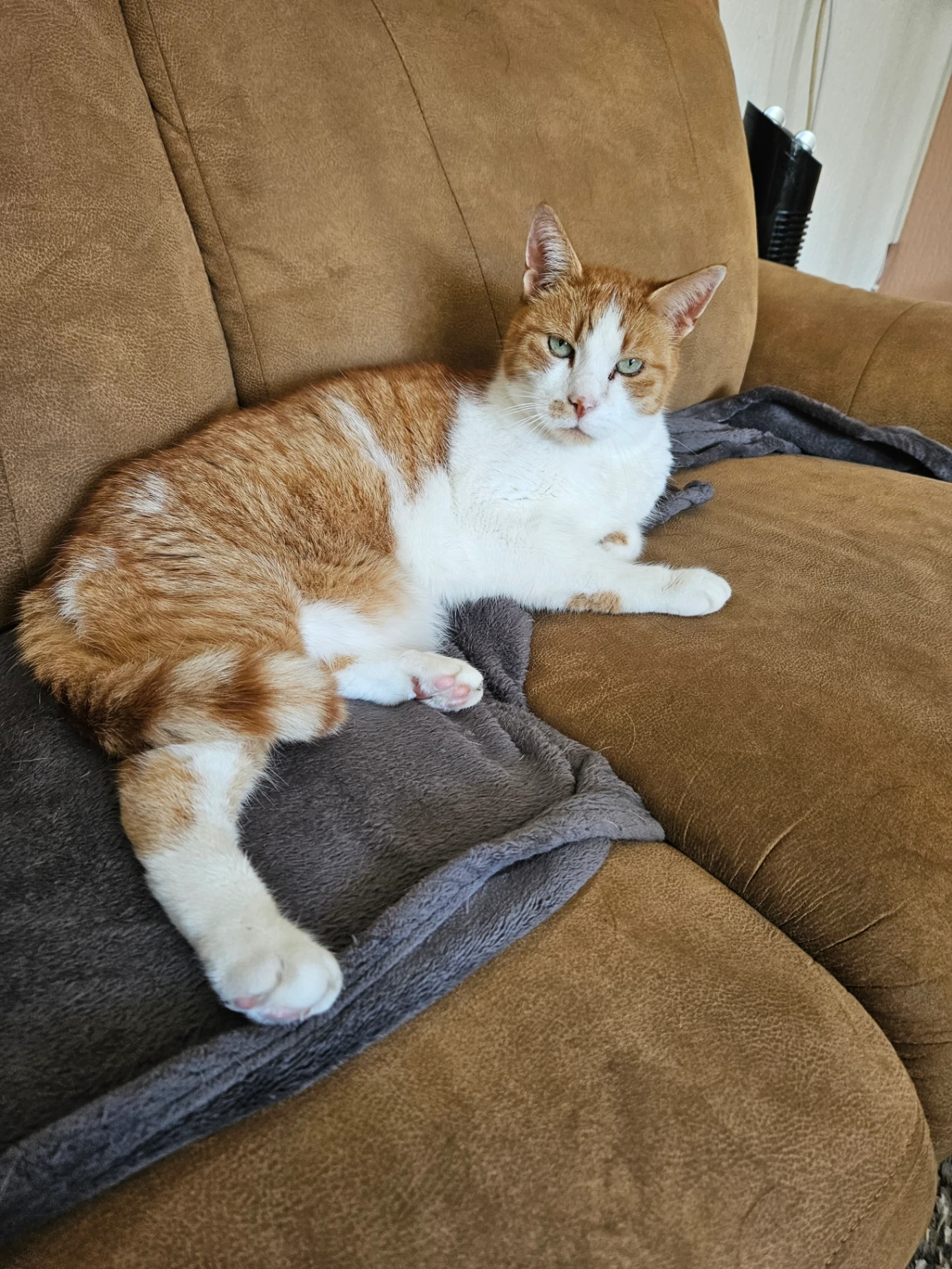 Is heel sociaal en vriendelijk, beetje kalige plek op zijn staart door een recente wond.