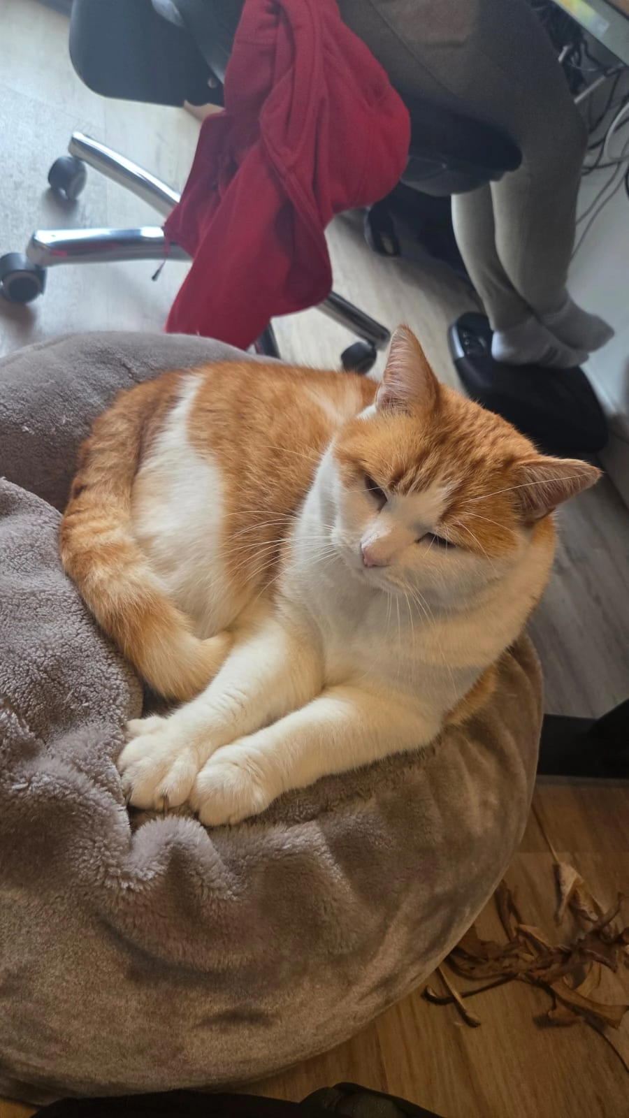 Fluffy is een flinke kater, half Maine-Coon waardoor z'n vacht wat dikker en voller is dan een normale europese korthaar. Hij weegt ongeveer 6kg. Mauwt als een Maine-Coon en heeft geen problemen met water, wel met vreemde mensen. Hij is meestal best schuw.