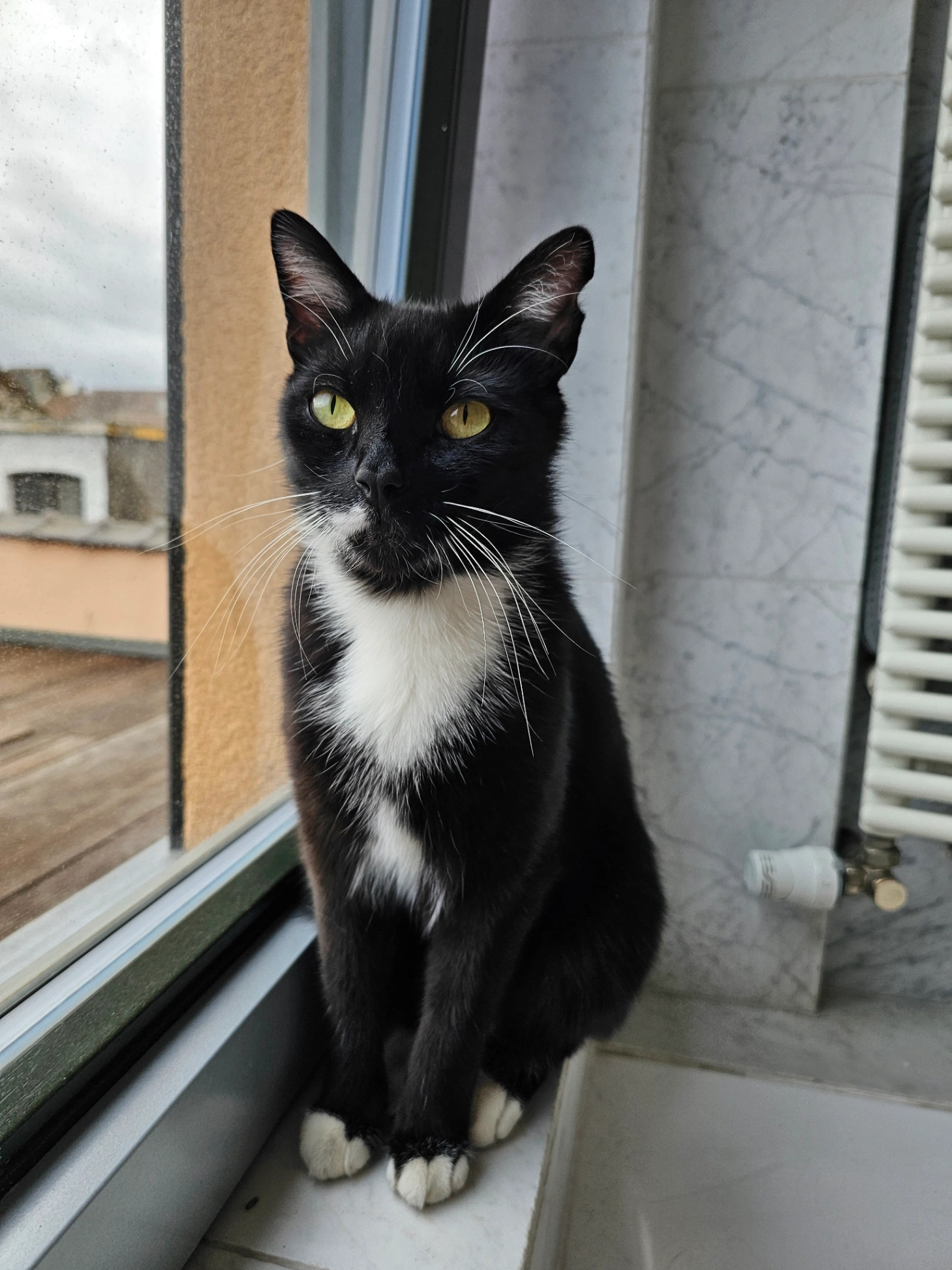 Chihiro vient d’emménager dans la rue, nous étions avant rue de l’orphelinat (à Anderlecht également). Jusqu’à présent il avait peur de sortir en extérieur dans notre nouvel apport mais hier soir il s’est enfui… c’est un chat très gentil, qui aime beaucoup les humains mais ne sait pas très bien se défendre face à ses congénères…