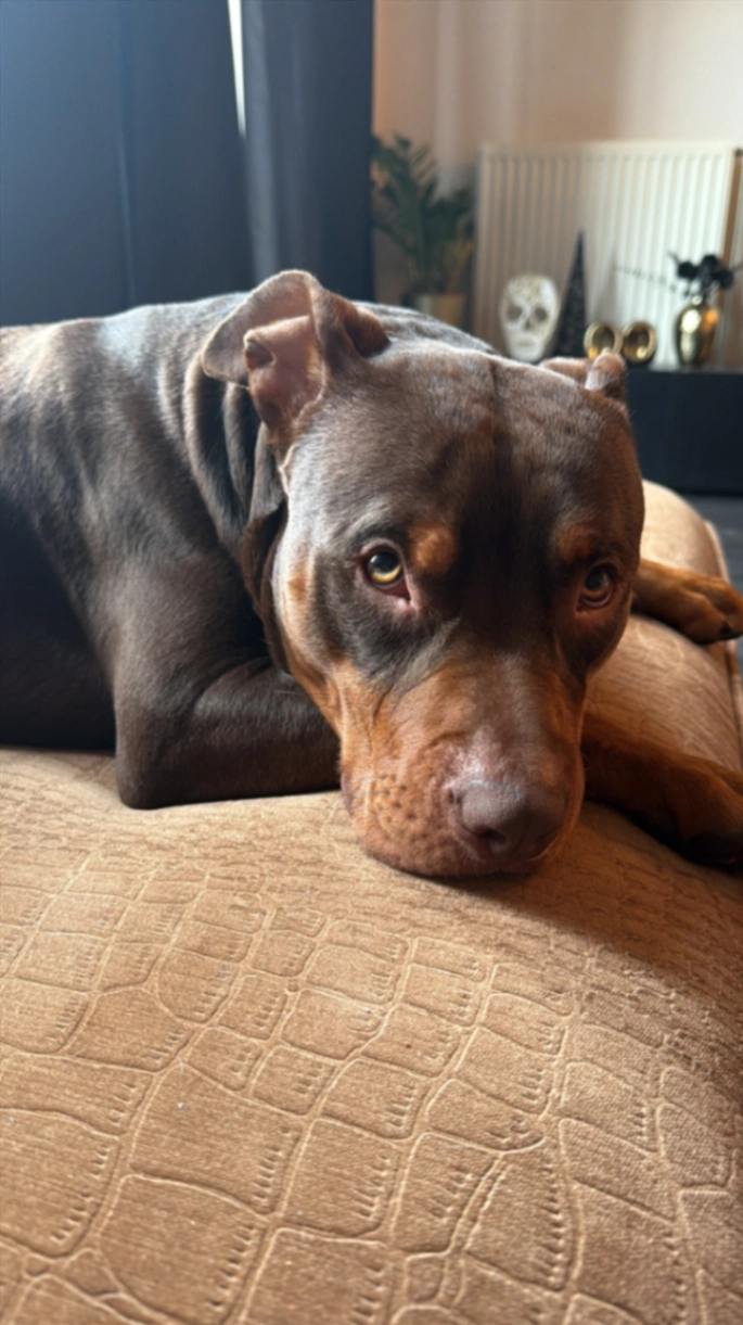 Hij is 1 jaar heel jong heel bang verder heel vriiendelijk naar mensen