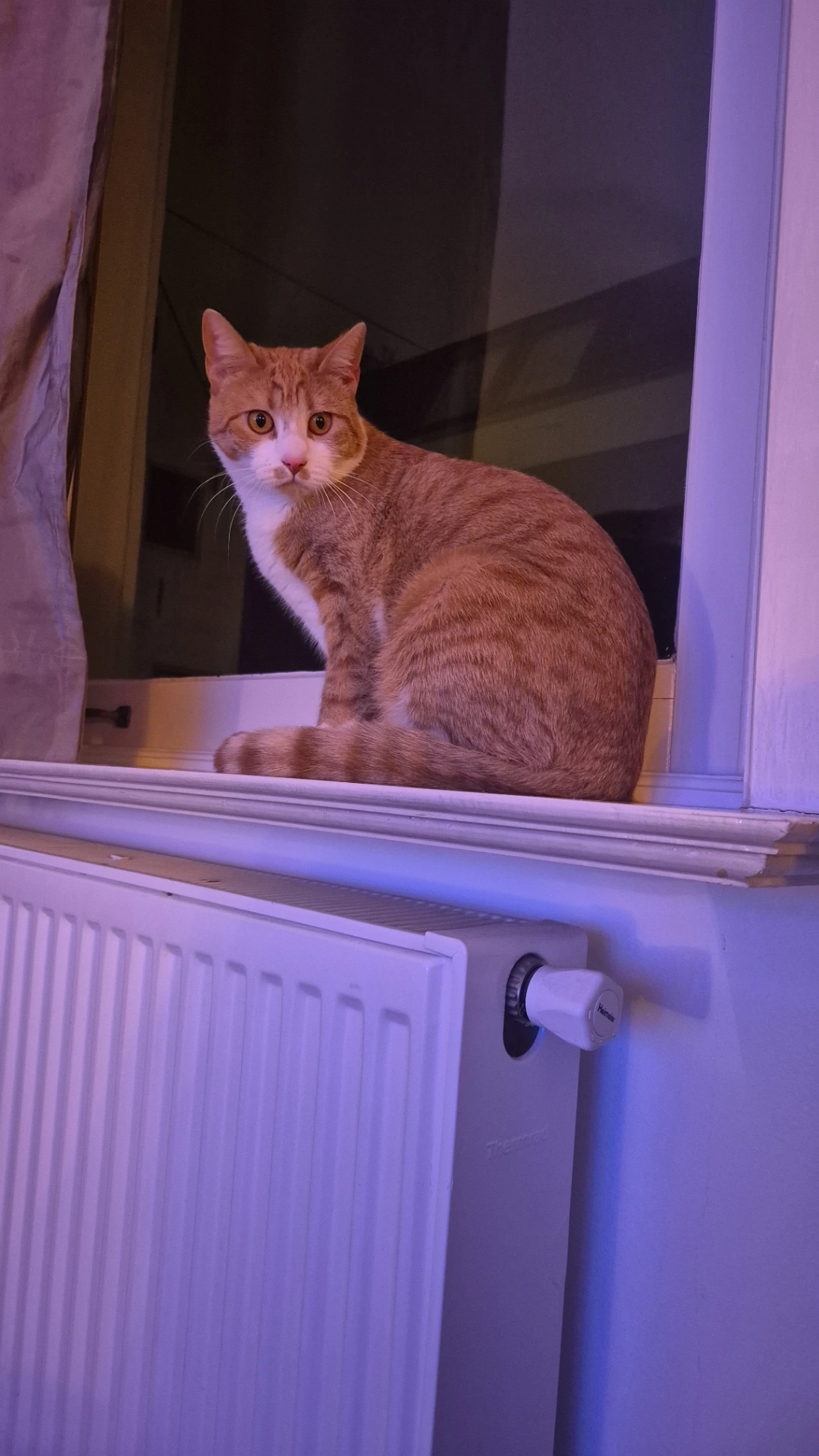 Crimp is een lichtoranje kater met streeppatroon. Hij is 1,5 jaar en vrij groot voor zijn leeftijd. Schuw voor mensen die hij niet kent.