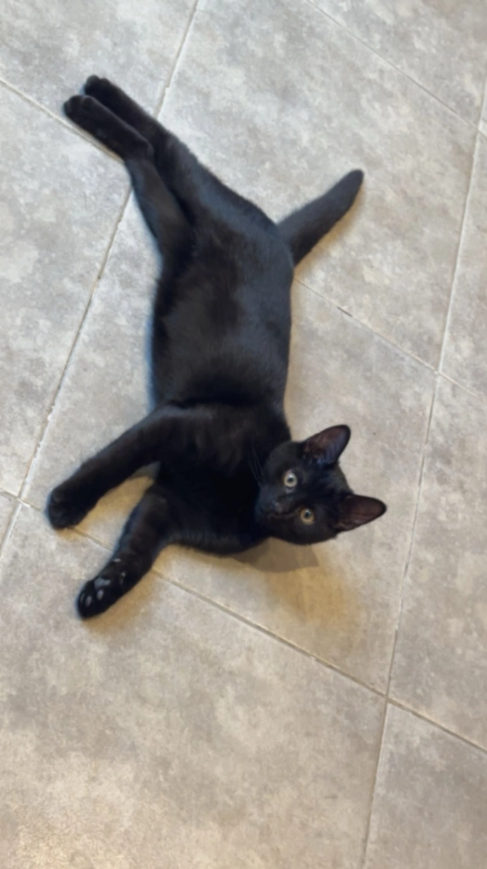 Pilou is een vrij grote kat, nooit aggressief, angstig in onbekende omgevingen en schrikt makkelijk. Hij reageert op zijn naam Pilou ("piloe").