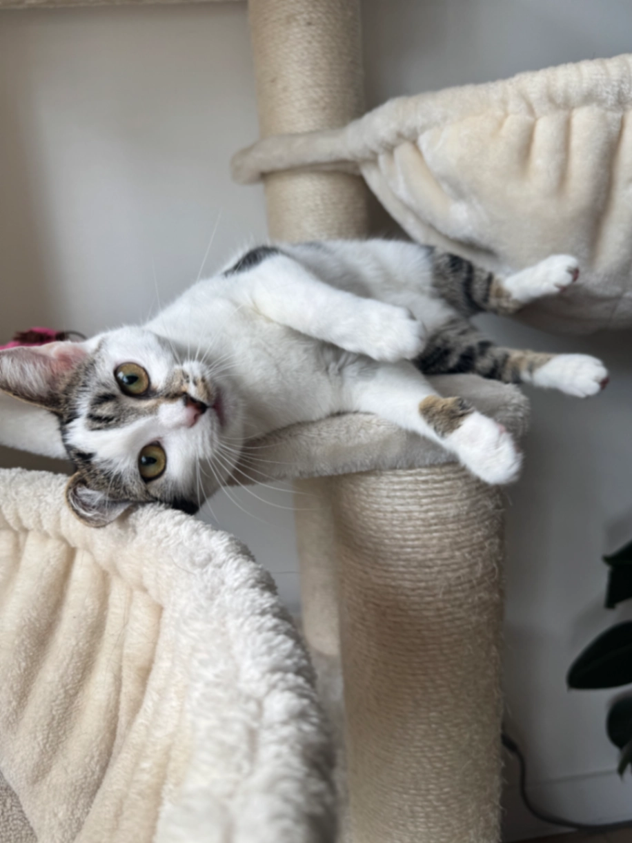 Nala is een kleine kattin ze word 2 jaar binnenkort. Ze gaat wel eens mee wandelen in een speciale rugzak aan een les, maar is niet gewend om alleen op straat te komen.