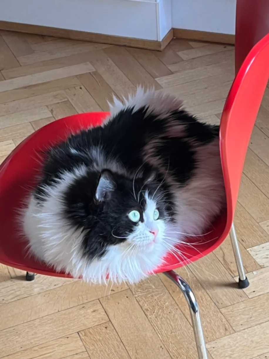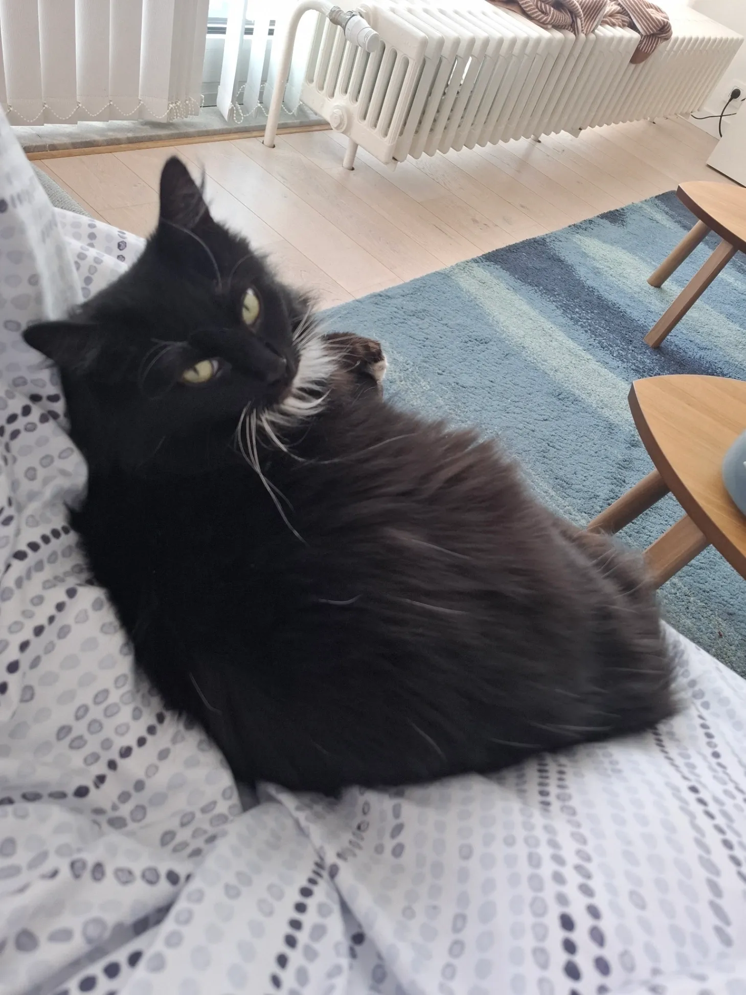 Hij is een verlegen katje hij komt nie snel naar he toe.