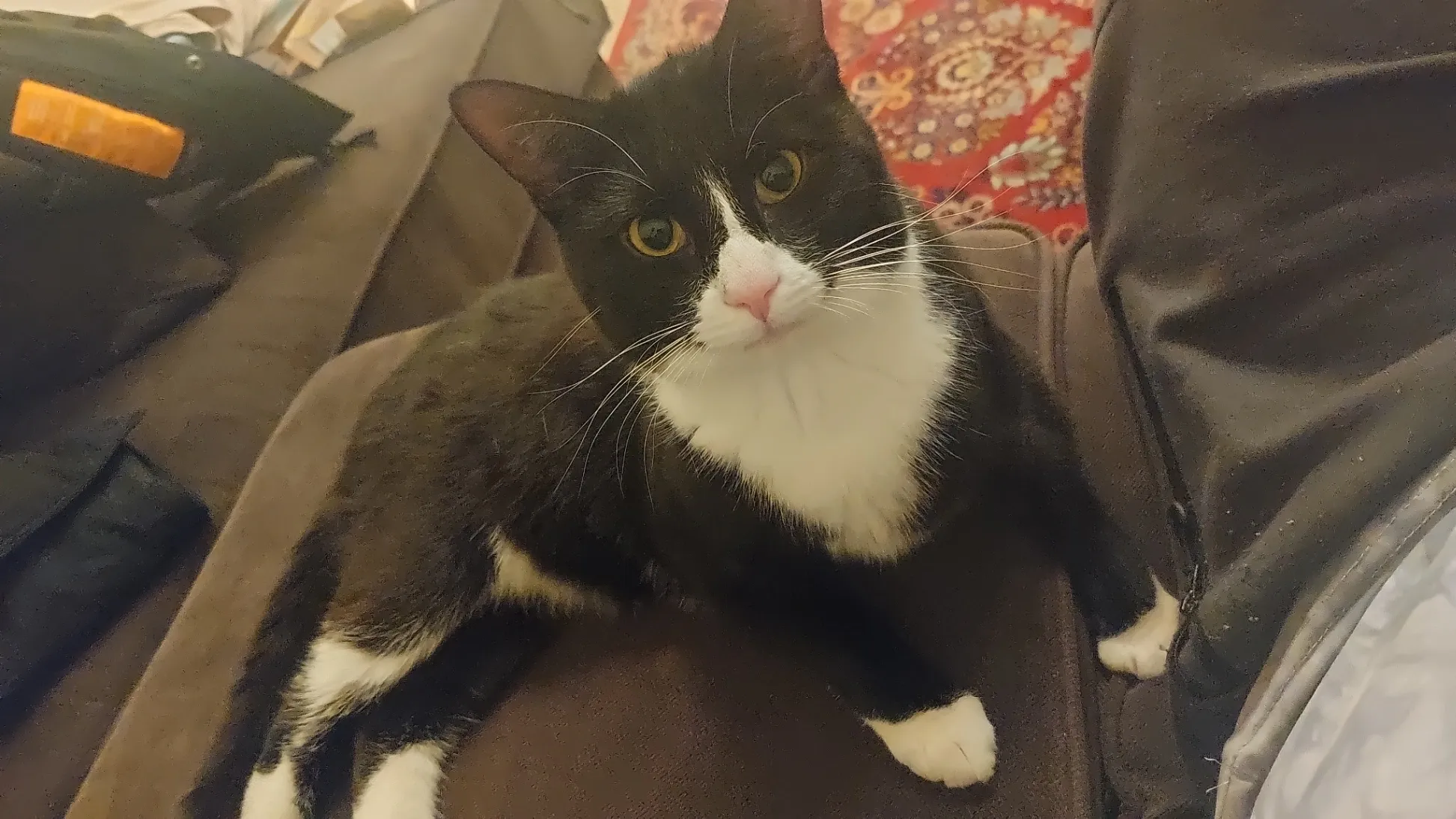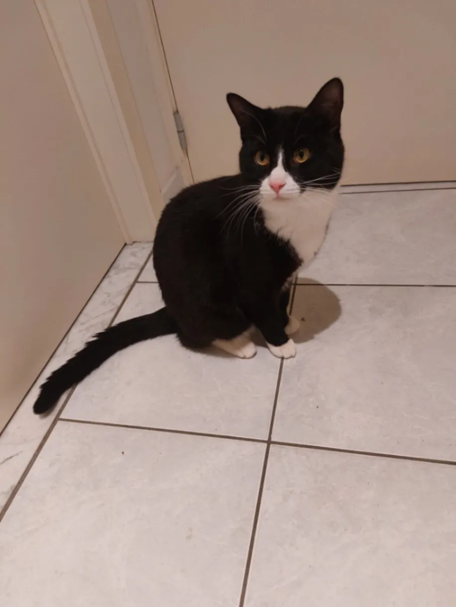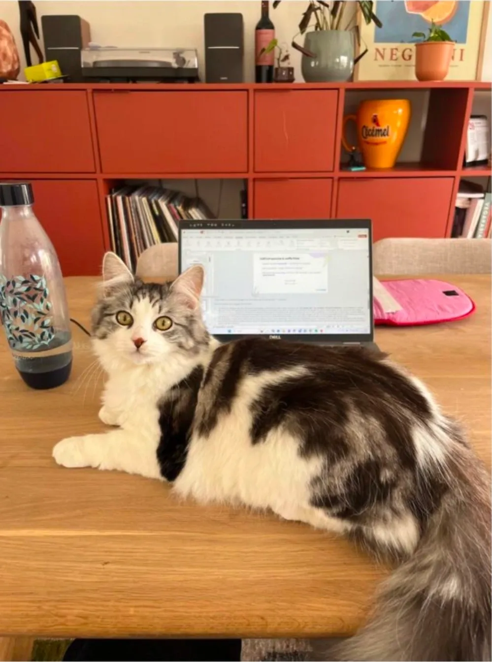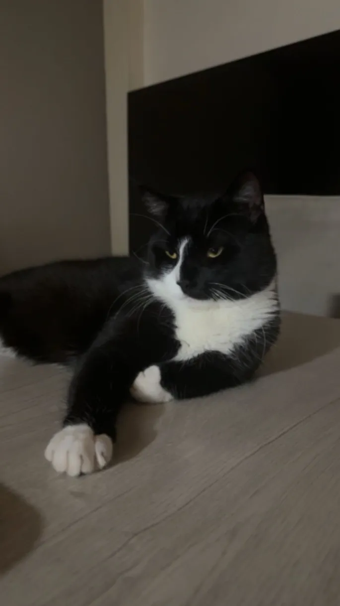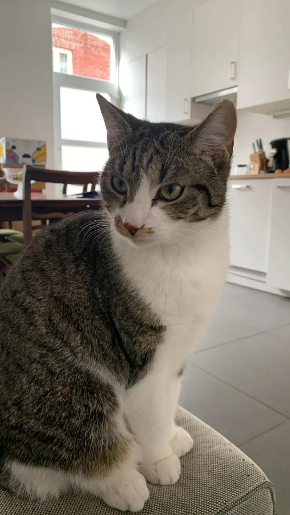 Kleine kater van 1 jaartje oud. Luistert naar Cristóbal (al kent hij zijn naam nog niet zo goed). Hij is slank en heeft een wit/grijs/zwarte vacht