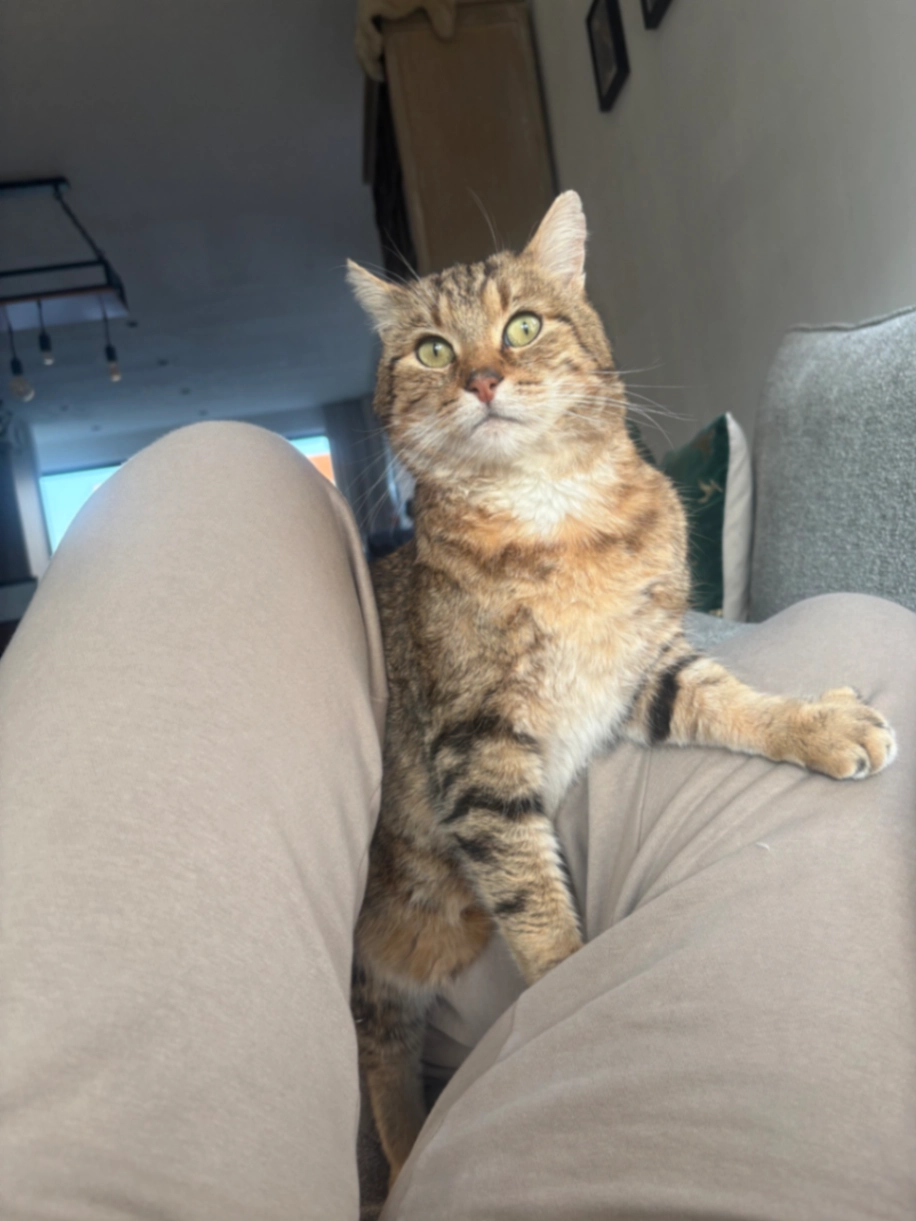 Simba is een aanhankelijke maar bange kat. Hij heeft een cirkel in zijn vacht aan de rechterkant. Zijn ogen zijn groen en hij heeft een wit/ros buikje.
