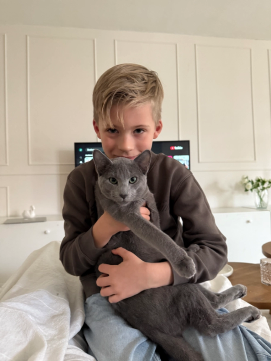 George is een mannetjes blauwe Rus van bijna 1 die heel erg geliefd is thuis.