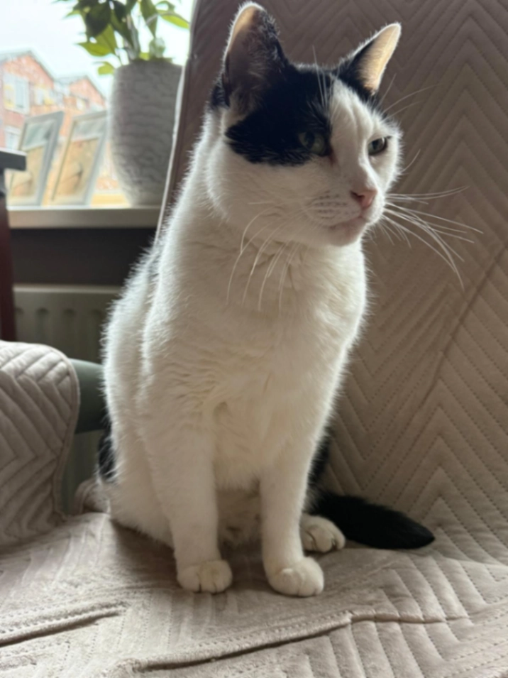 Het is lieve poes zo als ook z’n vrouwtje was helaas is mijn vrouw overleden ,het is een erfstuk , hij knijpt iets met linker oog