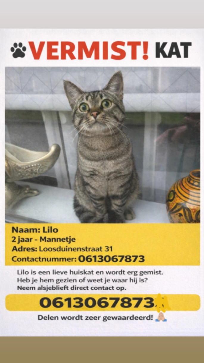 Lilo 2 jaar mannetje. Is een huiskat. Kan best bang nu zijn.