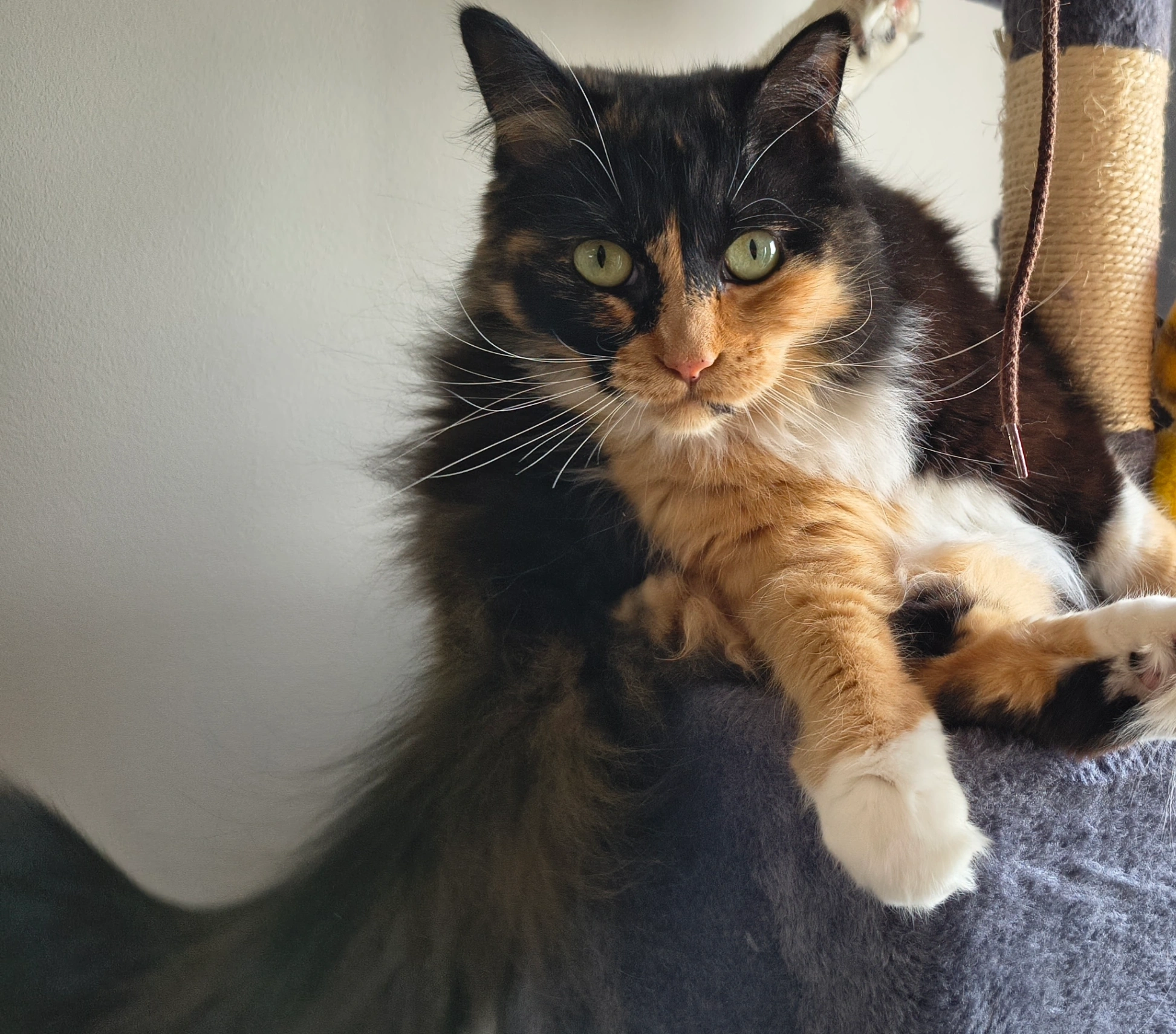 Geluid: ze heeft een hele hoge toon en een luide “miauw”.