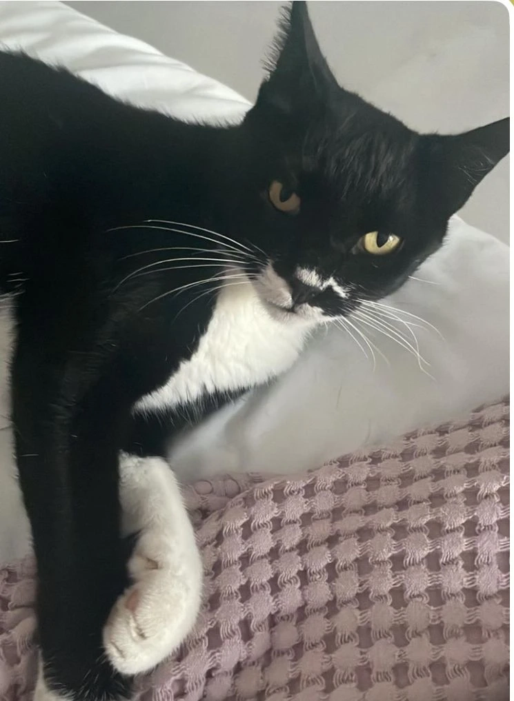 Meow is a male not castrated with chip he’s back is completely black he have a problem on is tail and looks broken, he’s usually scared and he’s use to be an home cat