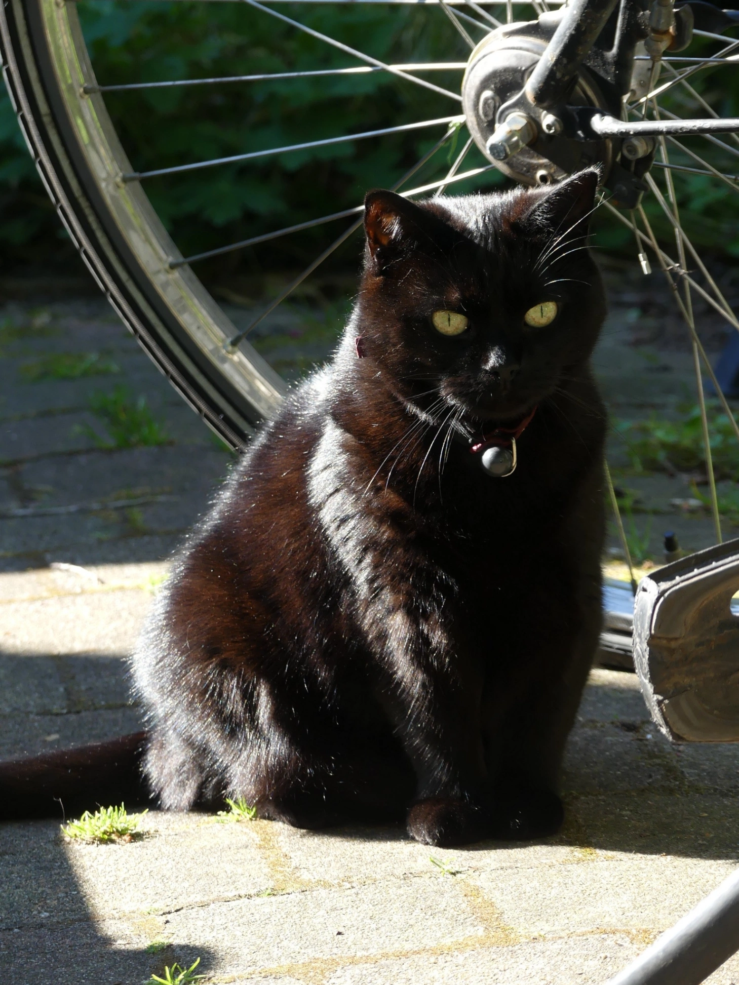 Vrij kleine kat, opvallend korte pootjes, kort neusje, staart hangt laag, hangbuikje, kleine oortjes, kortharig, volledig zwart. Vrij schuw, miauwt erg zacht. Ze draagt een beige halsbandje met o.a. een druppelvormig magneetje (voor het kattenluik). Zit midden in een antibiotica kuur voor bronchitus, is en oogt verder gezond.