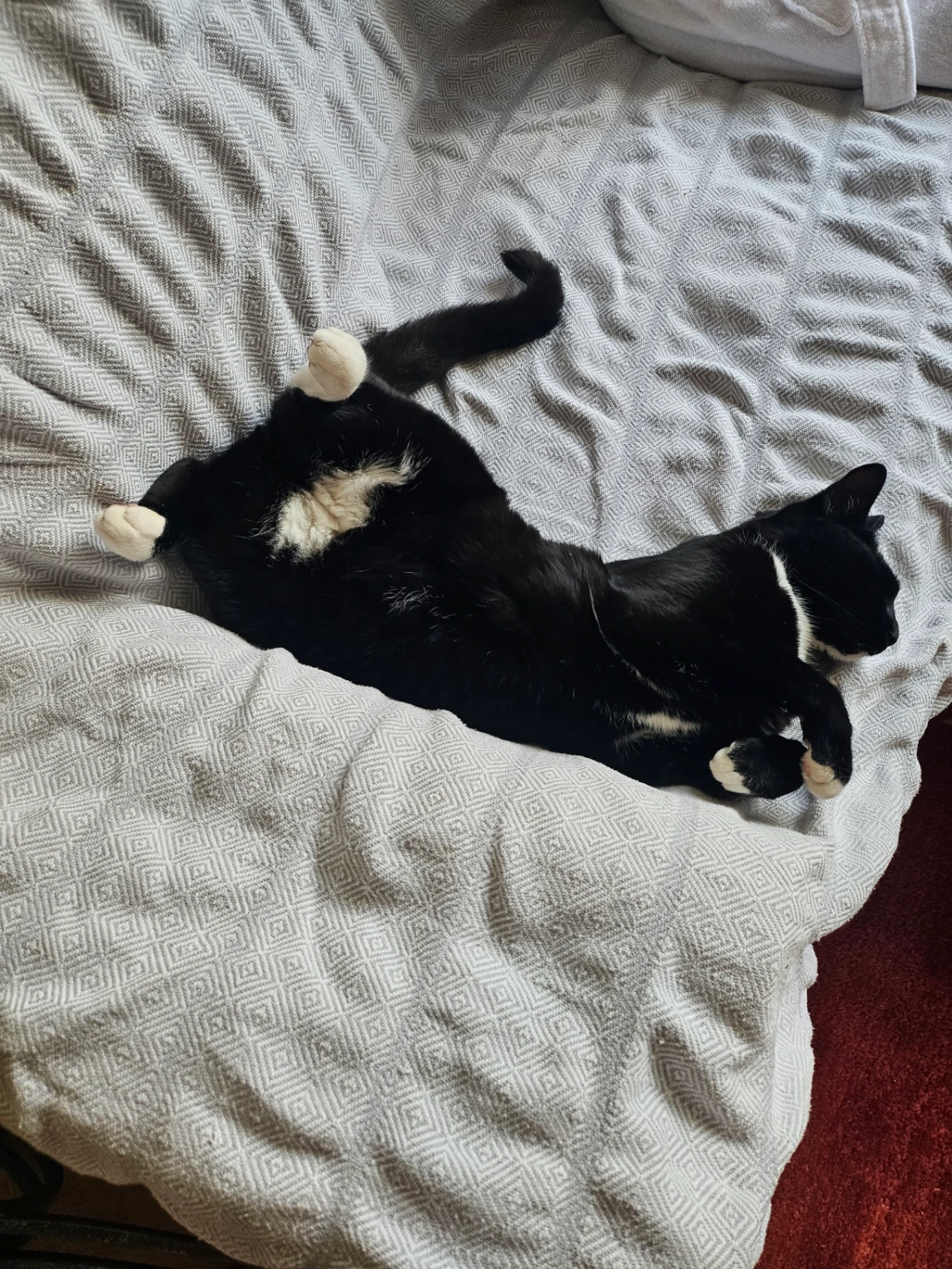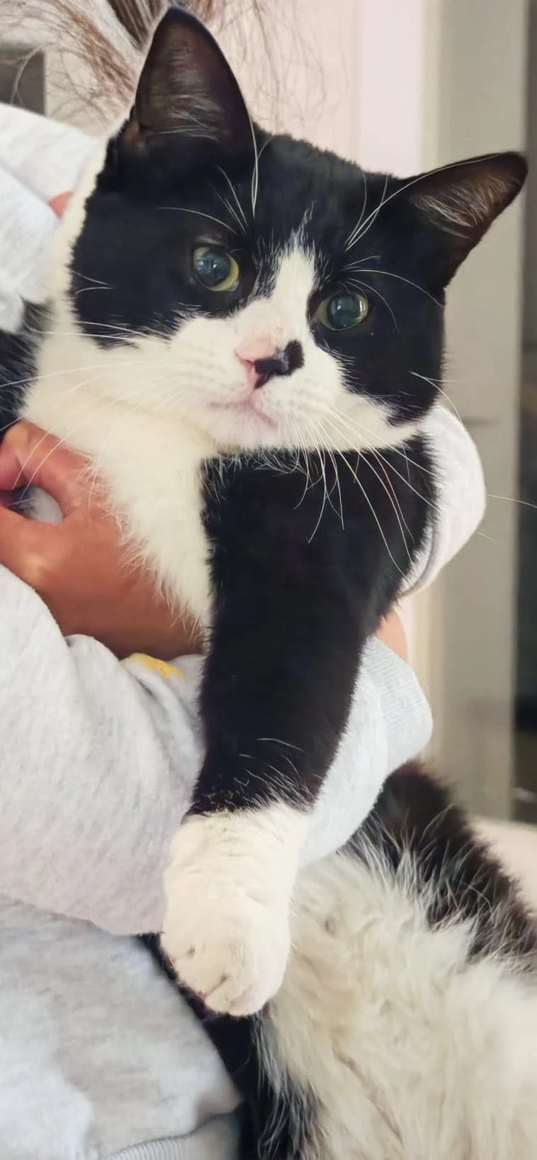 Vlekkie is een 2-jarige kat en erg toegankelijk. Hij is vooral herkenbaar door zijn zwarte vlek op zijn neus.
