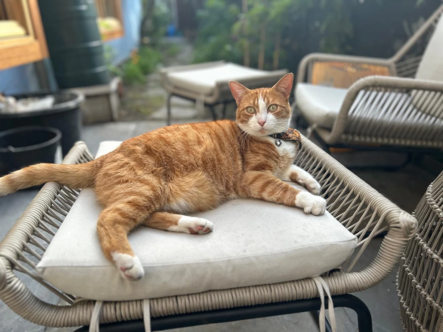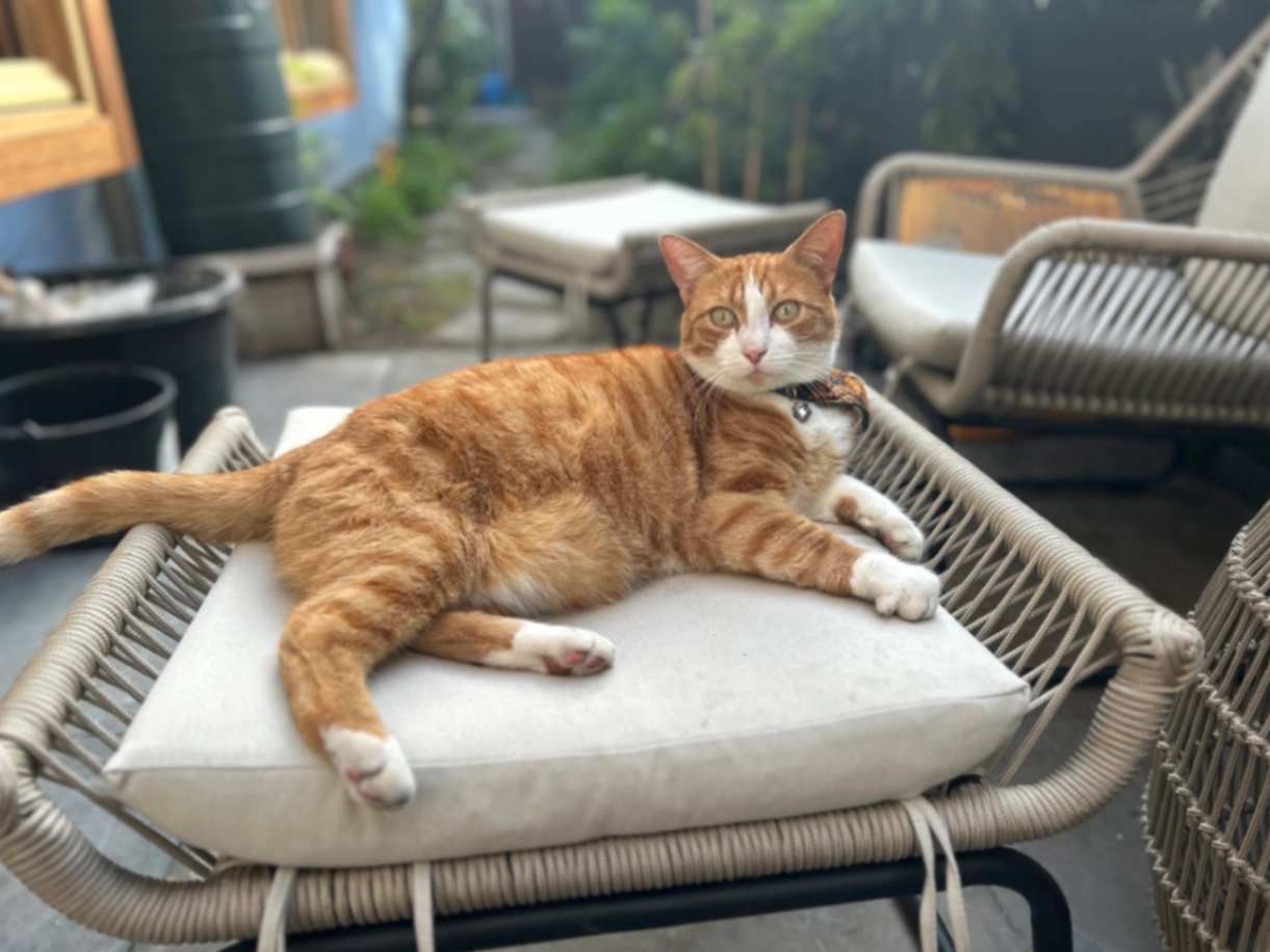 Tobi is een rode kat. Hij is ietsjes voller. Rond hoofd, grote ogen.