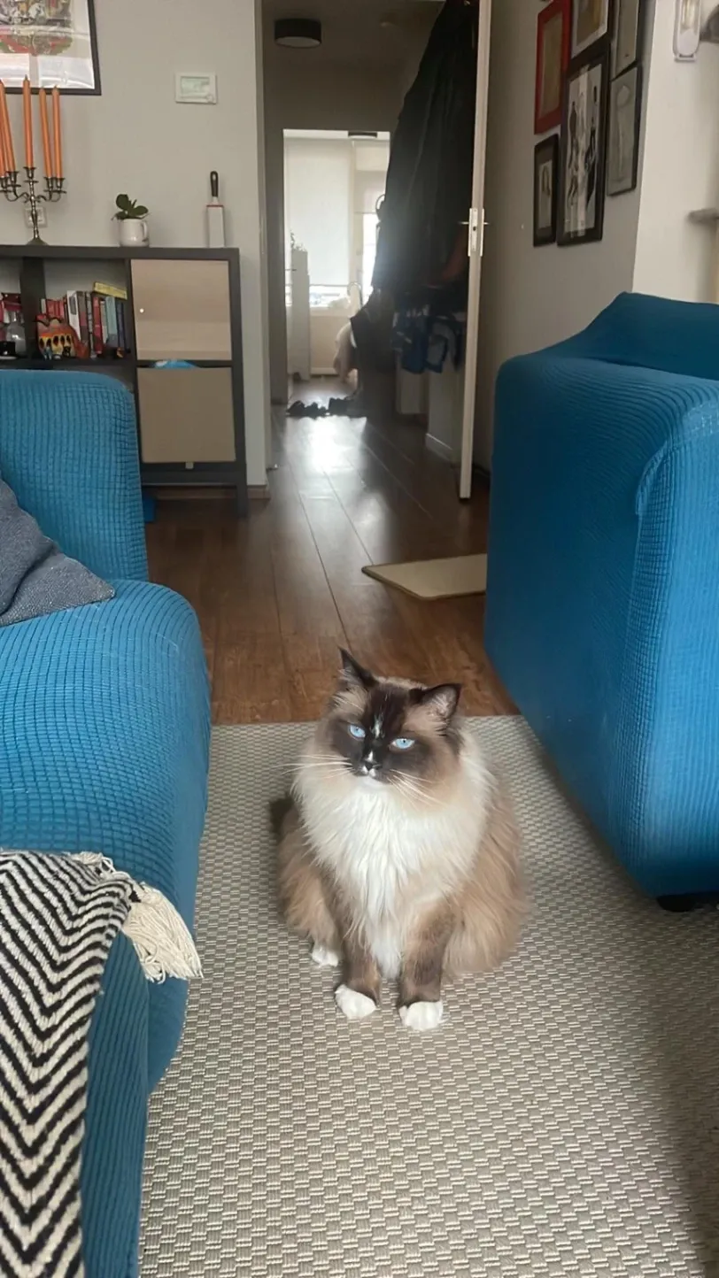 He is a middle size ragdoll with a tiny white dot in his nose. He is chipped. He is not used to be outside, so he might be scared. We really appreciate any information you might have, we are offering a reward of 500 euro if you find him.