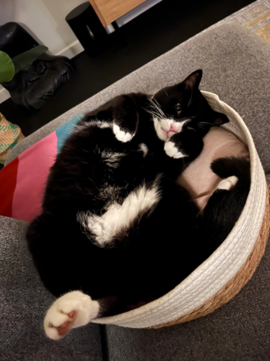 Zwart-witte kat, heel lief maar wil niet opgepakt worden.