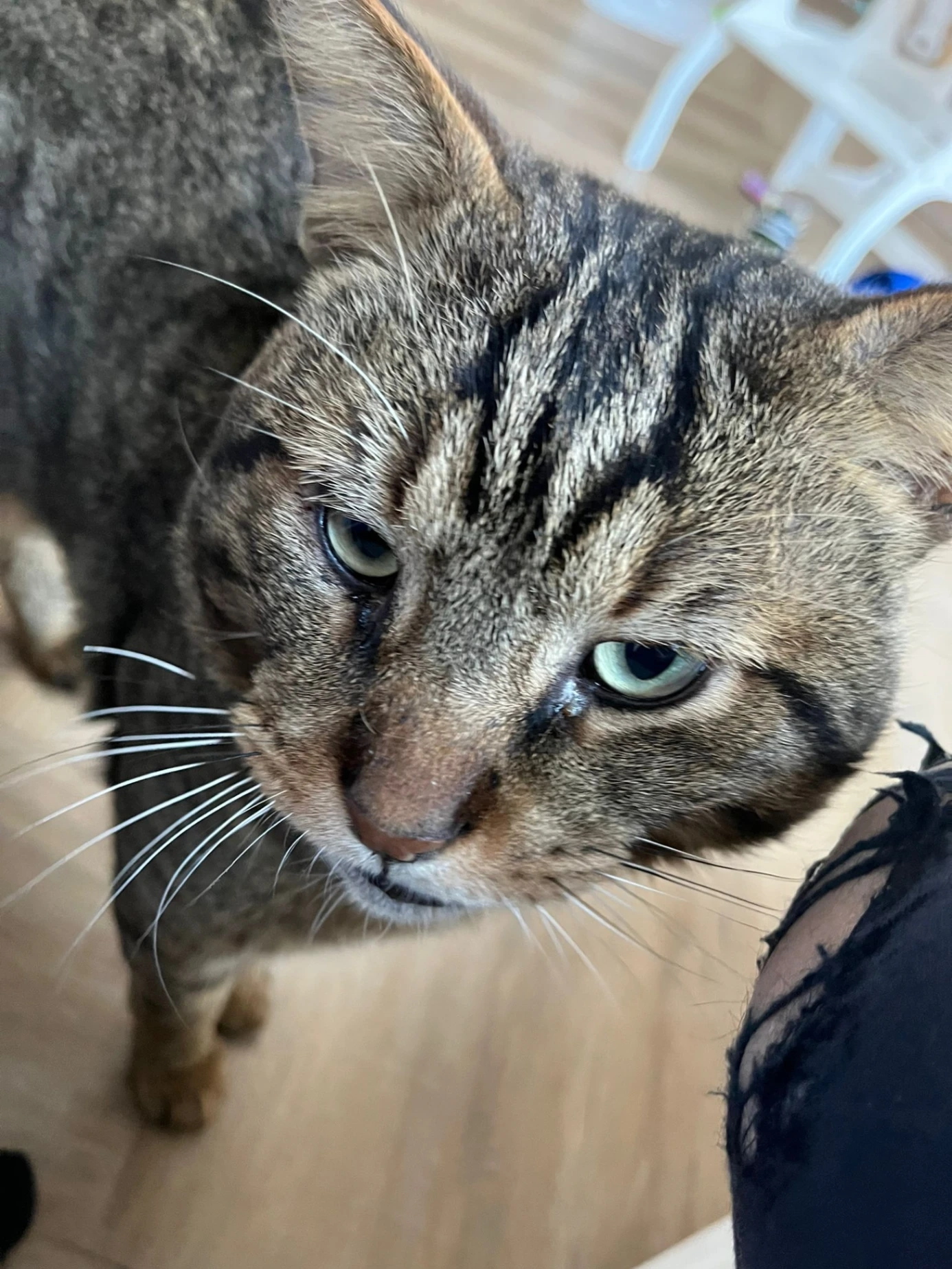 Is a very big cat, breed Chausi, not neutered, around 8 kilos but not fat, has some scars on the ears