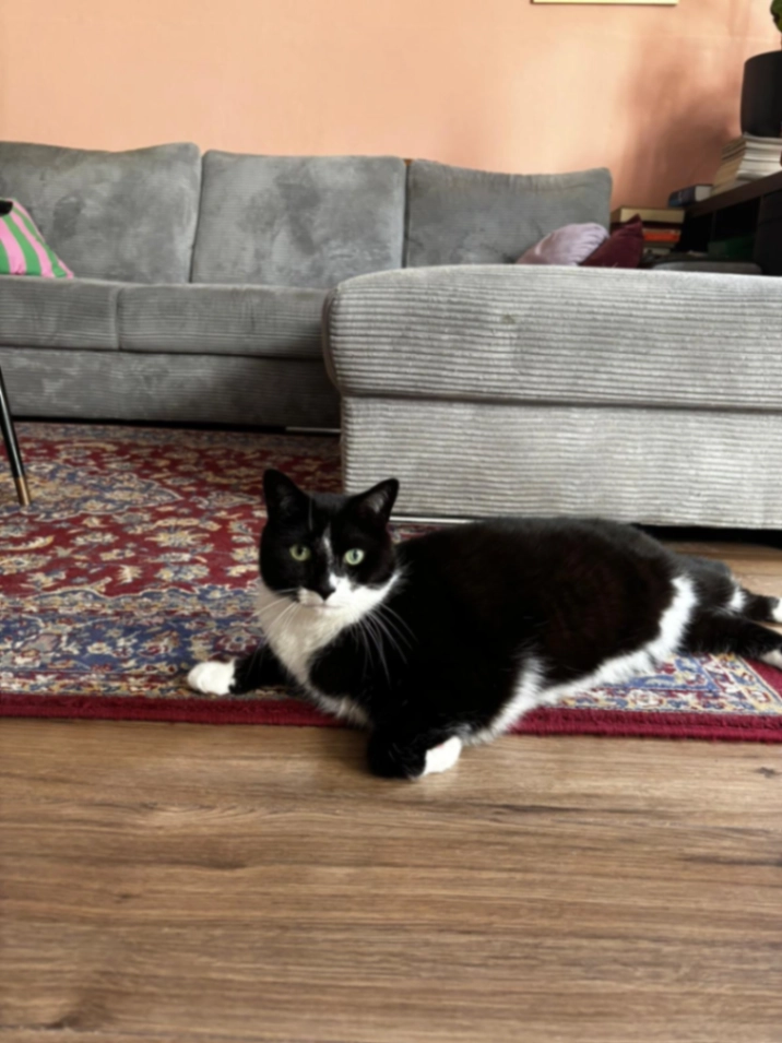 Moos is een kater van 2 1/2 jaar en heel lief en aanhankelijk. Zijn buik is heel mooi getekend als een tijger.