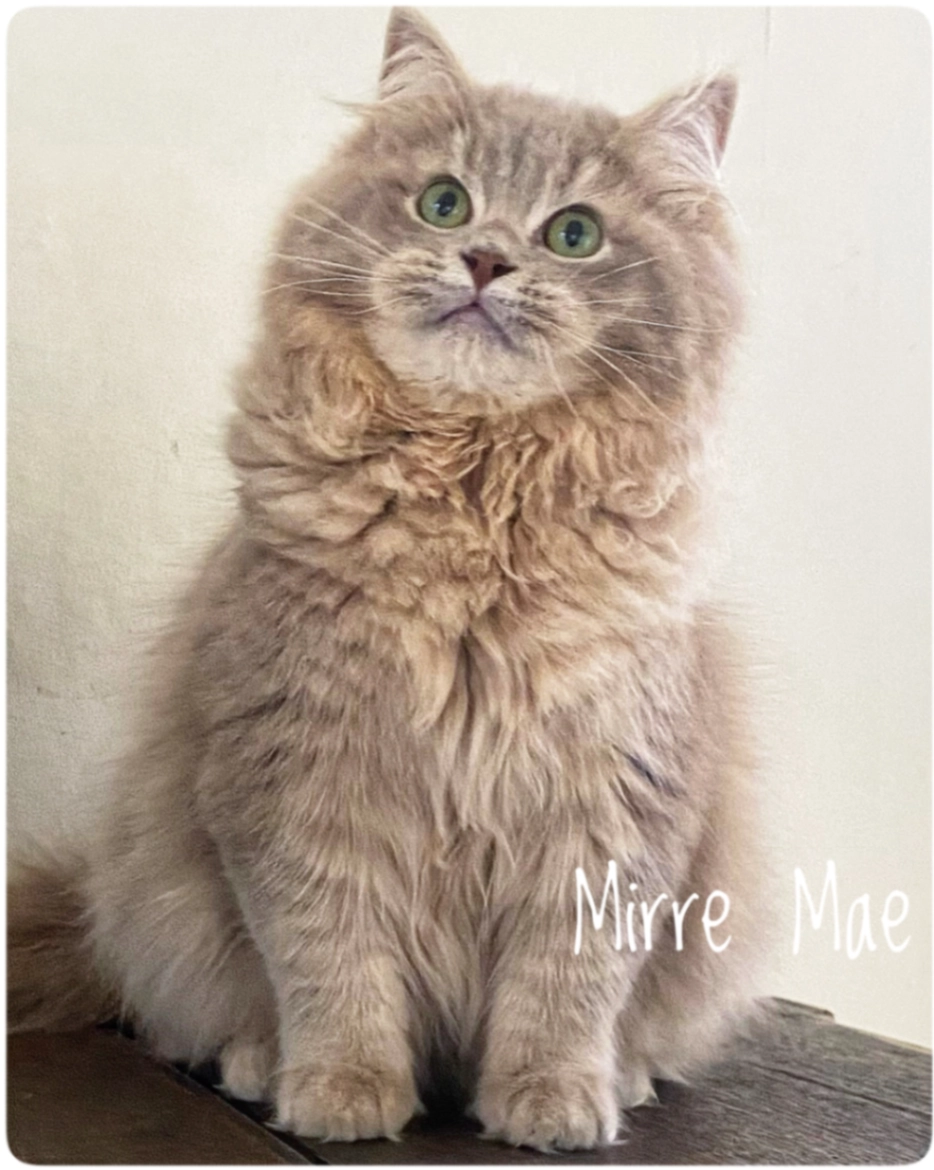 Mirre is halflangharig met groene ogen . Ze is erg lief kan voor vreemden terughoudend zijn. Ze blijft meestal in de tuin maar is sinds 23 april vermist